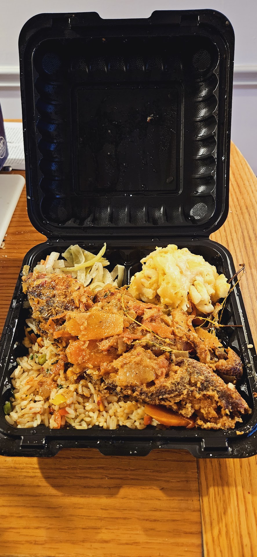 Great place if you're looking for Caribbean food but its take out only, I didn't mind though. When I walked inside a friendly couple who owns the place welcomed me. The place was very clean and gave off warm Caribbean vibe with the music playing in the background. I don't eat any meat so I asked what other options there were. I was recommended to try the Red Snapper dinner. The portion size was big and I was very pleased with the quality of the food. They gave me so much food I couldn't even finish it all. I will definitely be going back...