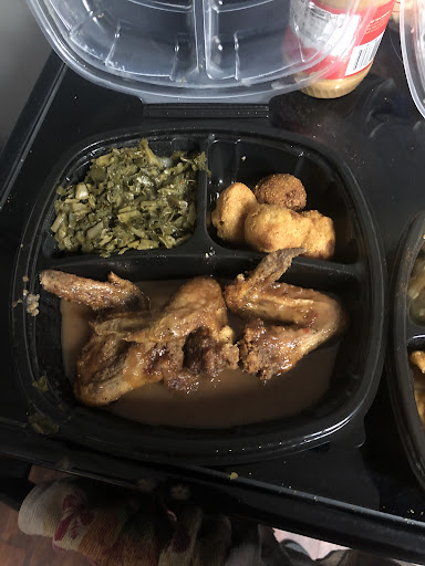 Seafood platter. Fish dinner. Wings. Fries. Hush puppies. Mozzarella sticks. Food made fresh - call ahead if you can.