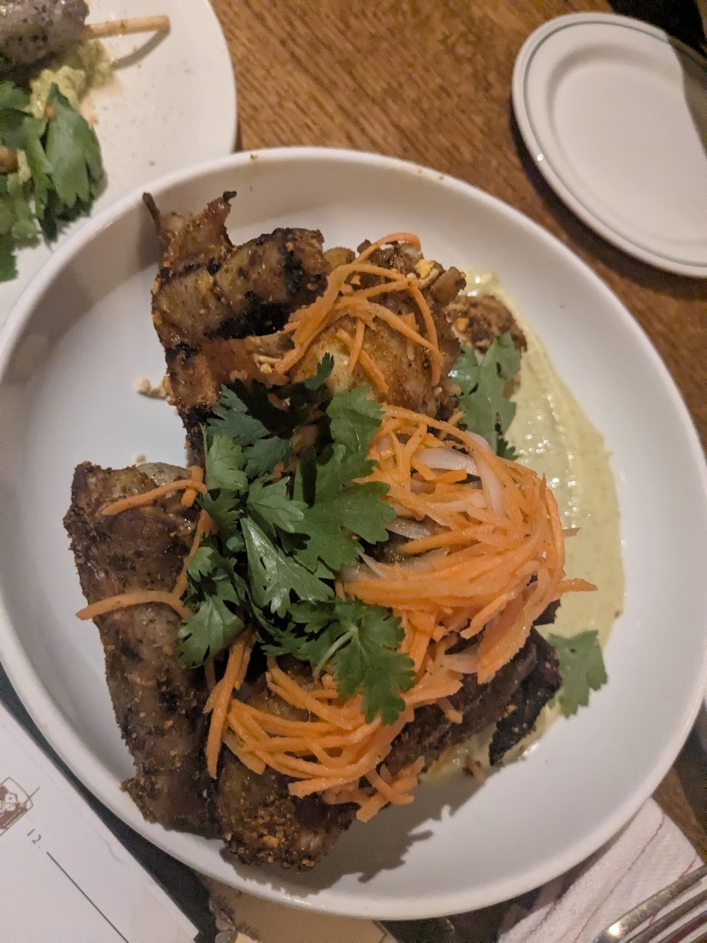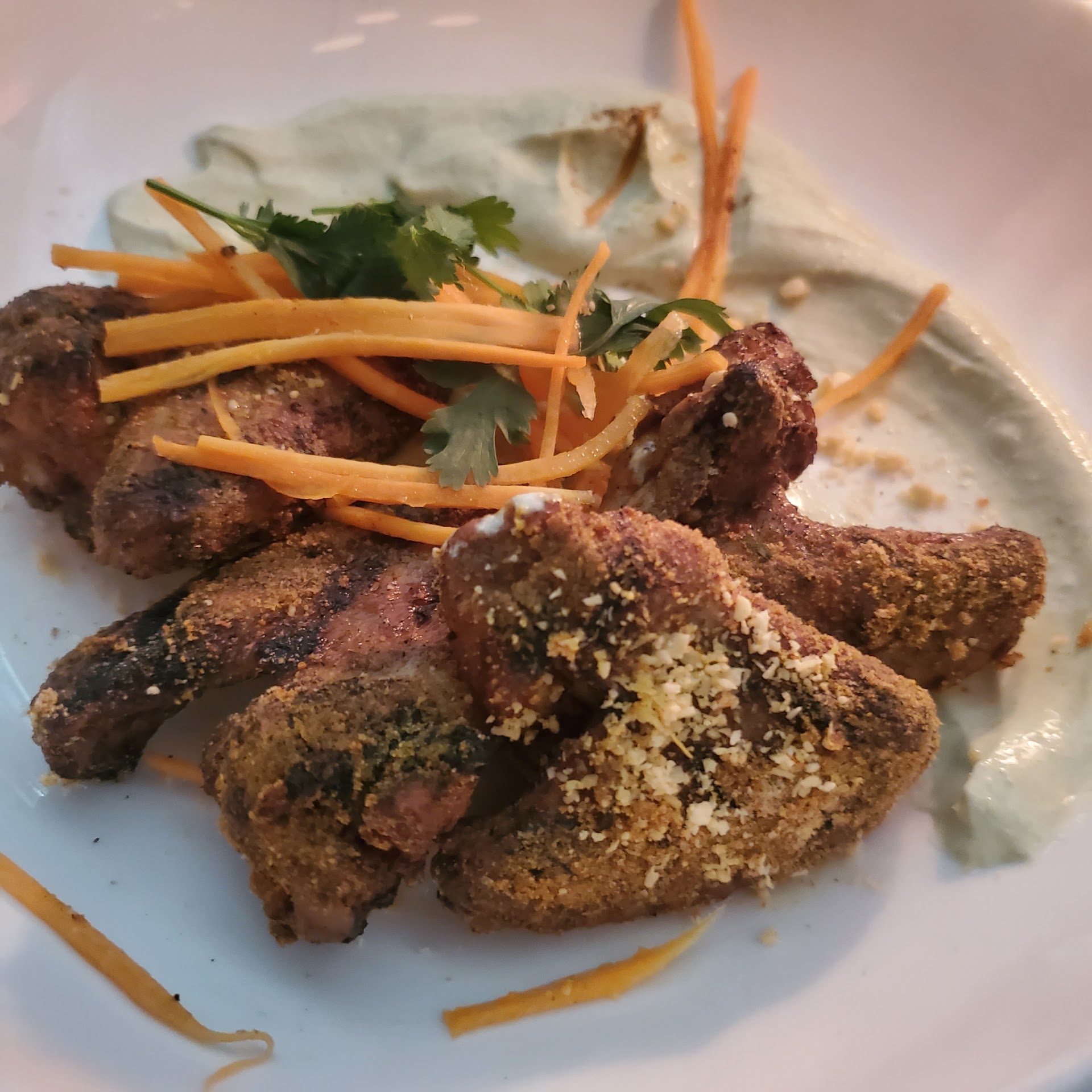 Apps: 2 lamb kabobs, delicious. Heavily seasoned but really good. One order of the curry wings, so good. One beet and radicchio salad which looked beautiful but was too acidic.