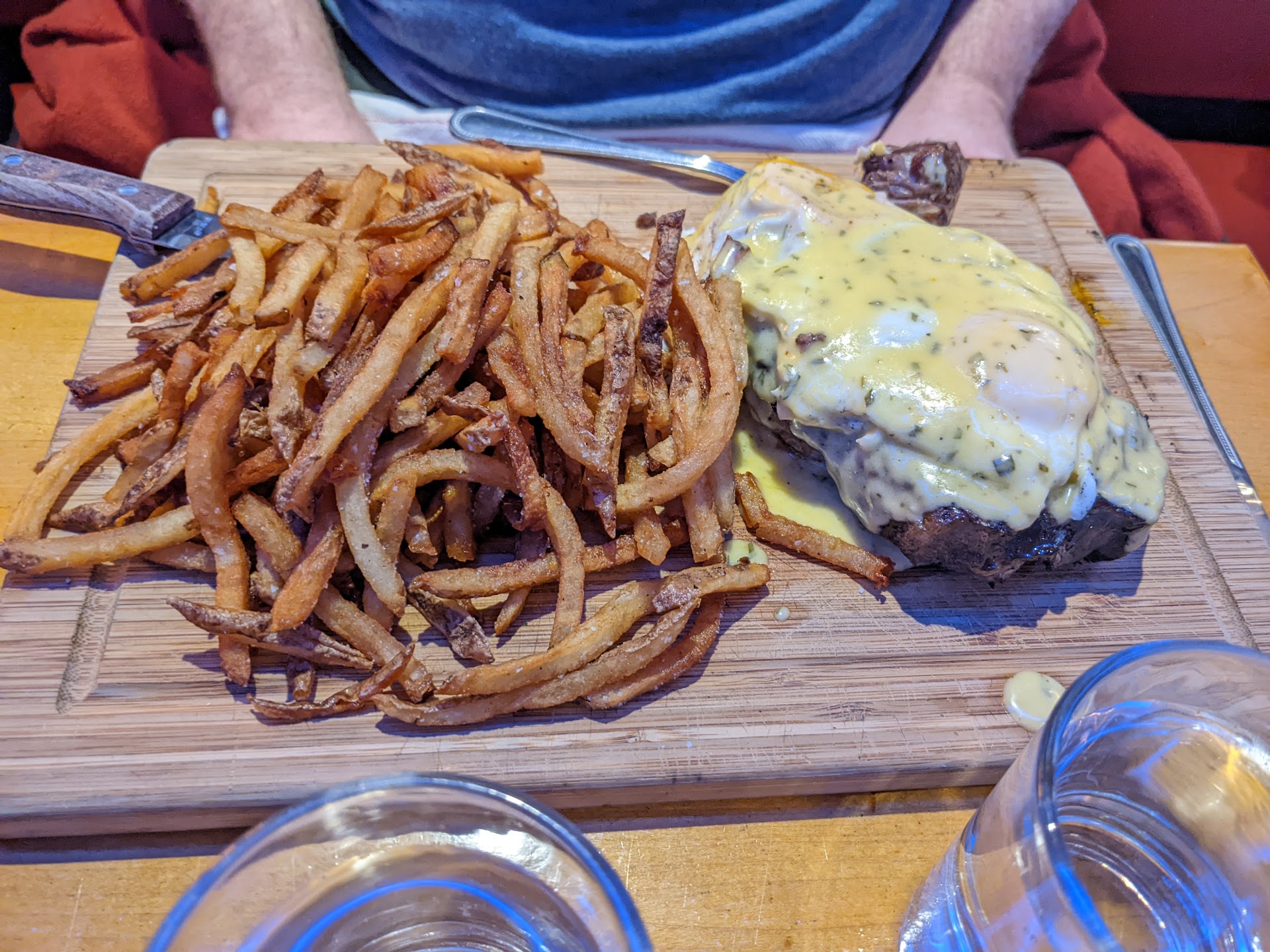 Read moreActually meant to grab lunch at the bar across the street but they were closed.. and so glad that was the case! They were slammed when we walked in at noon on a Sunday with no reservation during their brunch rush... We walked in right behind another party, but the hostess noticed that my mom is on oxygen and so very solicitously spoke with the party ahead of us and asked if they were okay if she let us cut the line. (!) (To be clear, we didn't ask for this favor, the hostess just had the sense to see that that would be the kind thing to do and took it upon herself to manage it. Our server was equally gracious!) That alone would have been worth me taking the time to leave a great review, but then the food, cocktails and service were all outstanding as well. My husband got the steak and eggs, which was not only ginormous, but perfectly cooked. I was jealous until I bit into the pub Burger, which has now ruined me for all other burgers. I assumed the "Lucky's Sauce" was the ketchup/mayo combo you find most places, but if it was they add something else that gives it a little bit of a zing that tops off the perfectly cooked burger with the perfect amount of enhancement. I could go on and on. We were there in the middle of a busy brunch and it was boisterous and loud - but not enough that it was difficult to hear each other. (I HATE going someplace where you have to shout to be heard, it just absolutely ruins things for me. At full peak volume it was clear we were sitting in the middle of a packed restaurant filled with happy tables, but at no point was it irritating or distracting. 💕) In short, I'm so glad the place we had intended to go was closed, I will definitely be recommending this place to family and friends alike! (We got the steak and eggs, pub Burger, French omelette with a side of toast, a bloody Mary, and two other cocktails that I forget the name of.. despite multiple...