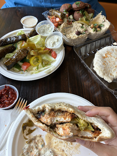 Ā Ā Ā Read moreWas hungry and wanted something quick and ālightā . Remembered seeing this place and thought it might be a good idea, and it was! Walked in, was greeted and began to read the very large and legible Menu. Had to take a moment and think carefully because the hungry in me made me want it all, but I didnāt want to over order. I ordered an appetizer of Baba, the Chicken Shawarma pita, and the kids size Falafel, which came with hummus. To go. After a few minutes ( about 5) it was ready. Brought it home and dove in. First the Baba, huge portion which had a substantial drizzle of fig balsamic (which Iām a huge fan of) that I didnāt expect. Hadnāt tried Baba with fig balsamic in the past, so I was trying to process the flavors before I dove in. My apprehension was correct because although I love the flavors of both, I wasnāt sure if they would be good together, and they didnāt. In my opinion, The sweet tangy flavor of the balsamic overpowered the Babas subtle earthy softness and made it taste just wet and flat (at first), after the balsamic flavor passed I could taste the gentle notes of garlic and cumin in the Baba. I will remember to ask for the balsamic on the side next time. The Chicken Shawarma was absolutely amazing. Enough chicken in the top and bottom of the pita, as well garlic sauce, and the extra side of tahini made it perfectly tasty and satisfying. The Kids Falafel meal I ordered just to try the falafel (Iāve tried many) and see if it was up to par. and as falafel sometimes can be, it was a little dry. My guess it this falafel is premade in advance for timing, creating the āoverdryā texture. The hummus was delicious and extras of olives, pickled onions and greens were tasty as well. Will order again very soon and try some...