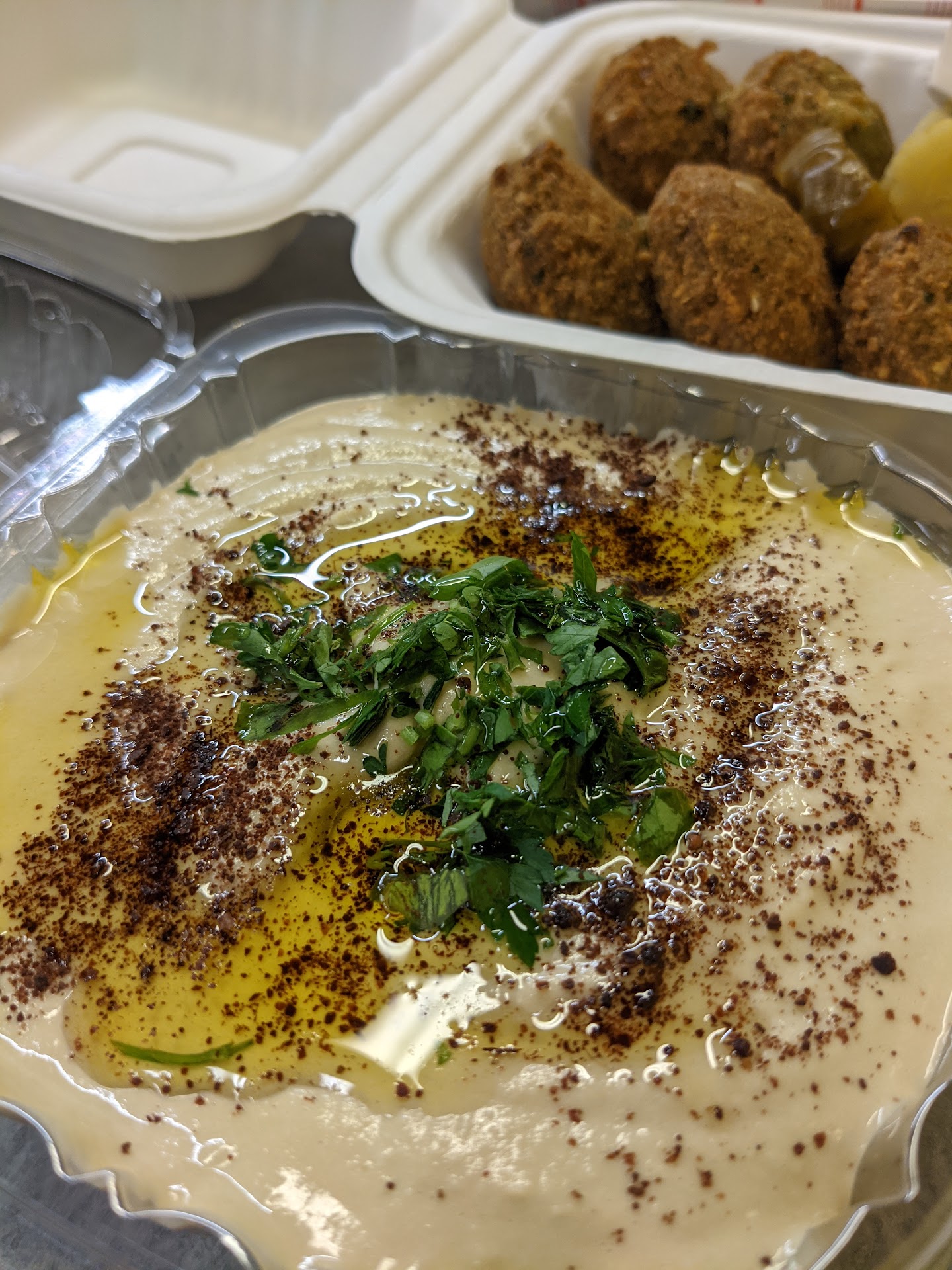 We ordered a few things.. yes get some falafel any version on them. I got the original, it comes with a great dipping sauce and pickles yes I said pickles.. long, thinly cut ones. They are fried and warm and almost have a meaty taste to them and it's chick peas kids and herbs and spices. These were yummy! Get an order to try if you have never had them.