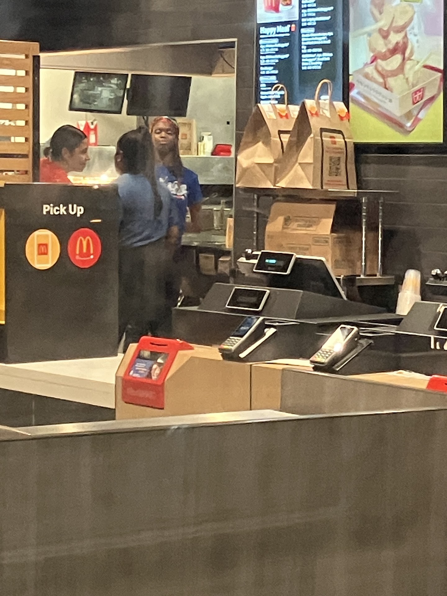 Read moreThe worst experience I have ever had at a McDonalds. I waited over twenty minutes to get to the ordering speaker. Once there, I noticed that the guy in front of me ordered 4 mcchicken sandwhiches. I had seen that there were no cars in front of him at the windows so I thought, oh good, that shouldn't take long. The lady said shed be right with me. 7 minutes later (I timed it. Seriously, 7 minutes.) She came back and took my order. I couldnt get the meal because their soda machine was broken. Fine, sandwich and fries it is. I pull to the window. Two workers were chit chatting. One finally takes my card and disappears around the corner to run my payment. Why she had to walk past three machines to do it, idk. Shes sipping a juice box the whole time. Gives me my card back, then goes to the counter and starts eating something. Meanwhile, they've left the window open so I can hear them tell the people behind me they'll be right with them, which takes them maybe three or four minutes to actually do, then tell each other the soda machine isn't actually broken its just being cleaned, and that her daughter lying in the booth in the closed dining room has fallen asleep again. One of them was slowly filling a container with straws (when the machine wasnt even working...) And the other was eating, chatting, and finally taking orders. I finally got my food, over a half hour after I first drove up to the bldg. Dont go at night to this mcdonalds. The late shift cant even be trusted to do the minimum amount of...