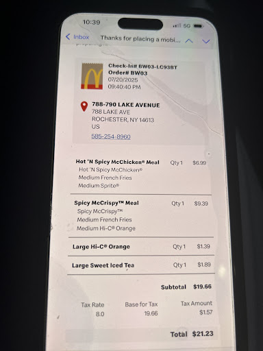 Recently I went to this location with a friend. I had a promotion I had received in a mail. I got my order and sat down , My friend got his a few seconds later. We started to open the wrappings and I took a bite. very dry and not much taste. My friend had no complaint . He just had a double cheese burger. Mine was a Big Mac. Long time since I had a Big Mac. I was surprised to find nothing but buns, hamburgers, and cheese. My friend's was better and his was off the dollar menu. I took it back up to the counter, and showed the cashier. She responded by saying they were out of shredded lettuce. Somehow I thought there was supposed to be something special about a Big Mac. I asked to speak to a manager and this guy came up from the back area and basically said the same thing, Though, he did say he could put a flat leaf of lettuce on it. But he never took my two burgers and returned to the back. I waited, waited, waited, and never saw him again. So I asked for my money back. My friend meanwhile had finished hi order. And we left. I came to realize I did not get back my promo coupon back. Not that I want to stop there again, I stop often to other McDonald's on the way to Brockport or in Brockport on my way to work or school. I enjoy your bacon egg and cheese biscuit, I was really disappointed with the food and the "who cares" attitude with the establishment nearest my residence. I only once before had a bad experience at a McDonald's. However, The manager stepped in a quickly took care of the situation, She happened to be near by and saw what had happened. I could tell then that this was a one time mistake and was not the norm. I do hope things improve at the Lake Ave. restaurant. The guys that have worked for me liked to grab a quick lunch from...