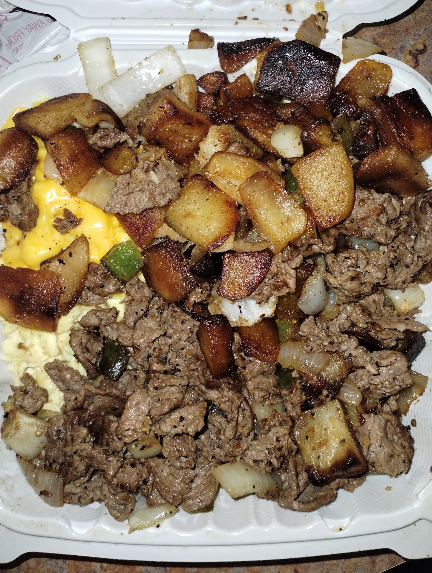 Ā Ā Ā Read moreFor two orders of pancakes mind you the pancakes did not have eggs nor sausage links. Weāre talking just pancakes. and a steak plate I paid almost $35 which is crazy thatās overpriced as hell and then itās not even a real steak. Itās chopped up little pieces of steak. They do not fully cook through the onions nor the peppers the potatoes are halfway cooked, semi hard in the middle and it is very very over season. It is not worth the money. I would say just pass on by. Donāt even stop. I really donāt know what people are going there feeding for maybe the high cholesterol and bad food. All you taste on the steak is salt and pepper unpleasantly and then the pancakes were just straight butter not no other flavor just butter. Mind you Iām a ever PEPPER food because I was OVER CHARGED but Iāll NEVER go...