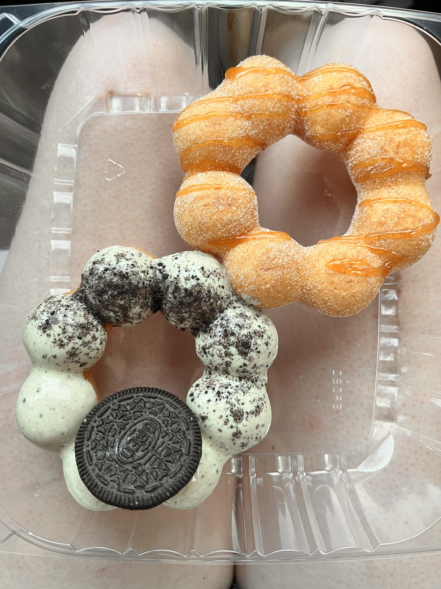 Read moreThis is the second time I went and it was absolutely delicious! The first I went was right before close (I didn’t know look at what time they closed I felt so bad) and the gentleman working was very kind and let me try the display dougnut and the last doughnut they had for the night. The texture of these are on the chewy side, light, fluffy and not too sweet…in my opinion wayyyyy better than a regular doughnut. There was a huge selection to chose from but I stuck to my two favorite flavors this time, Cookies and Cream and Churro. They were absolutely awesome. I was felt feeling satisfied after eating both and not too full. I highly...
