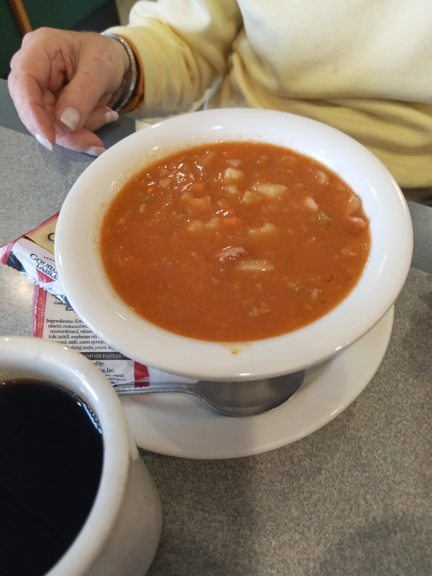 Read moreNot exactly the cleanest place I've ever been to, but definitely not dirty. The menu was full of Great American comfort food. Prices were acceptable, even good considering the state of our economy. The blueberry pancakes I ordered had real fresh blueberries, not dehydrated tiny bits and pieces of berry. They were sweet and firm too. I got the two pancakes, two eggs, two sausage links, and a drink. It was under $10 which is really saying something today. Everything was big enough to enjoy, but not so big that I felt over stuffed when I finished my plate. Service was great as usual! Never had a bad experience at this diner. It was not crowded, but also not empty. I believe this shows good service getting people in and out the door, and good food which draws people in. Parking is always a chore, as space is limited and quarters are tight. Look for a spot in the back, that's your best shot. Newspaper rack was empty as usual. I don't know if they don't get it delivered anymore or it's empty by 10:00 a.m. that's okay though, the weight for the food was minimal, so there wasn't any need to read the newspaper. LOL everything you needs on your phone anyway! The rest of our party was equally satisfied. The lunch menu is as good as the breakfast menu. All in all another fantastic visit to a great piece of...