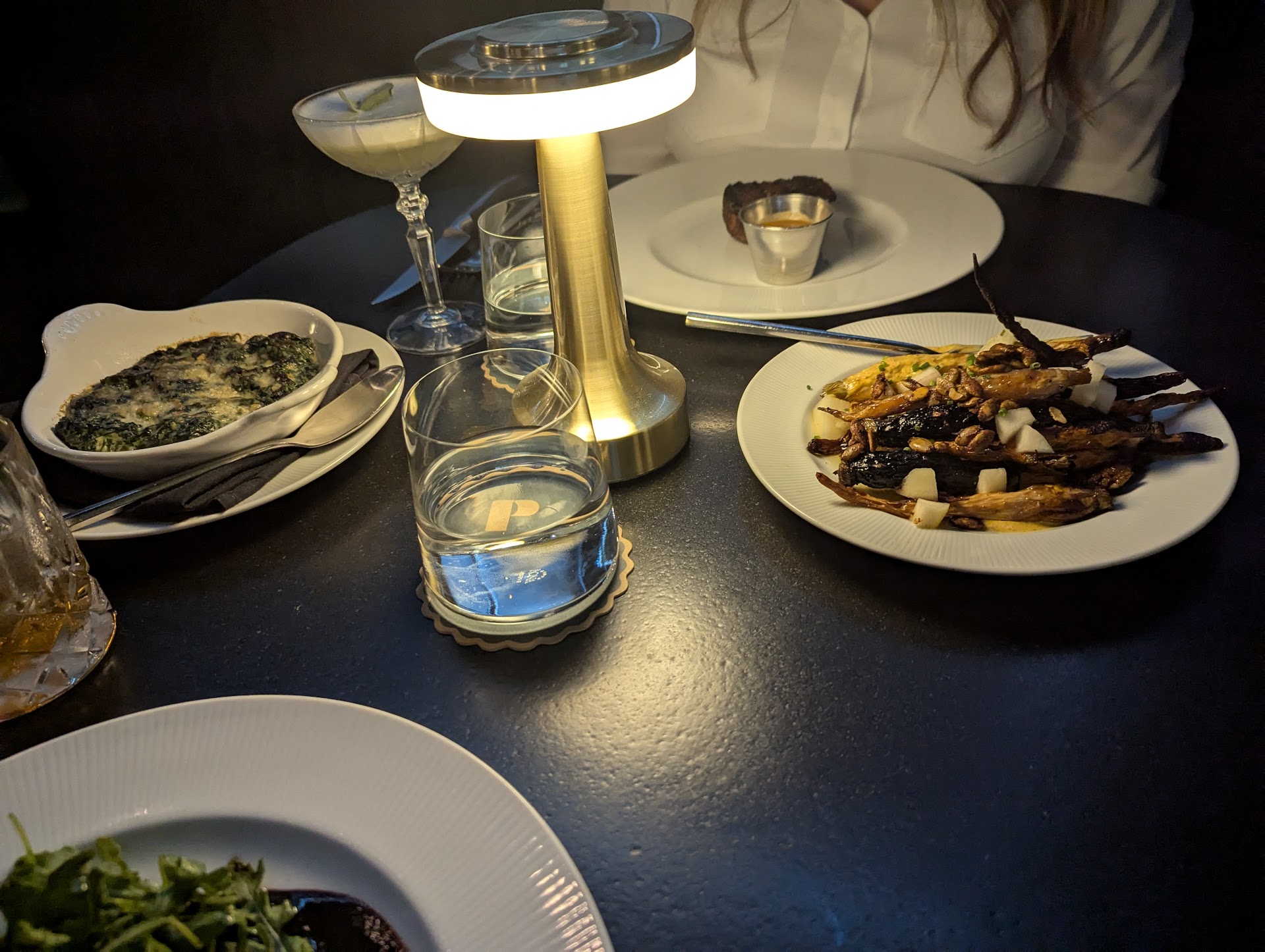 We got an order of the oysters (Brunswick). I was surprised by the size, they were small, but the flavor and freshness was spot on. No complaints. We didnât get any other appetizers because we knew we wanted to save room for dinner and dessert. I got the 10oz filet and hubby got the Australian waygu strip. We both ordered medium rare and they came out with the most amazing crust and flavor. Temp was perfect. I decided to get the bernaise sauce with my steak and I was not but disappointed . It was divine. So lemony with the perfect hint of tarragon. The filet didnât need the sauce, but it did enhance the experience. The waygu did not need any sauce; it was so delicious on its own. For sides, we ordered the carrots and hasselback potato. Both were delicious. The carrots had a chili maple spiced yogurt sauce that was perfectly tangy with a little spice. The hasselback potato had cheddar, bacon, and sour cream. It was like an upscale bar potato skin with so much flavor.
