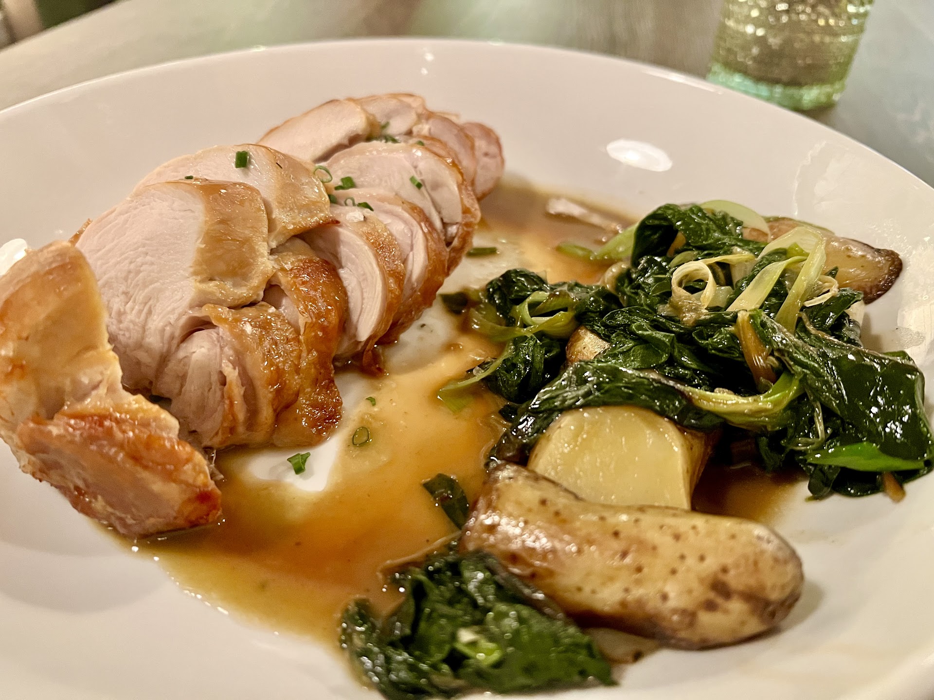 The Chicken Circle included greens, and butter potatoes. āUnbelievableā is the only word I can think of. I couldnāt eat all of it so I took some home for a snack tomorrow. Like I said, in the review, great portion size.