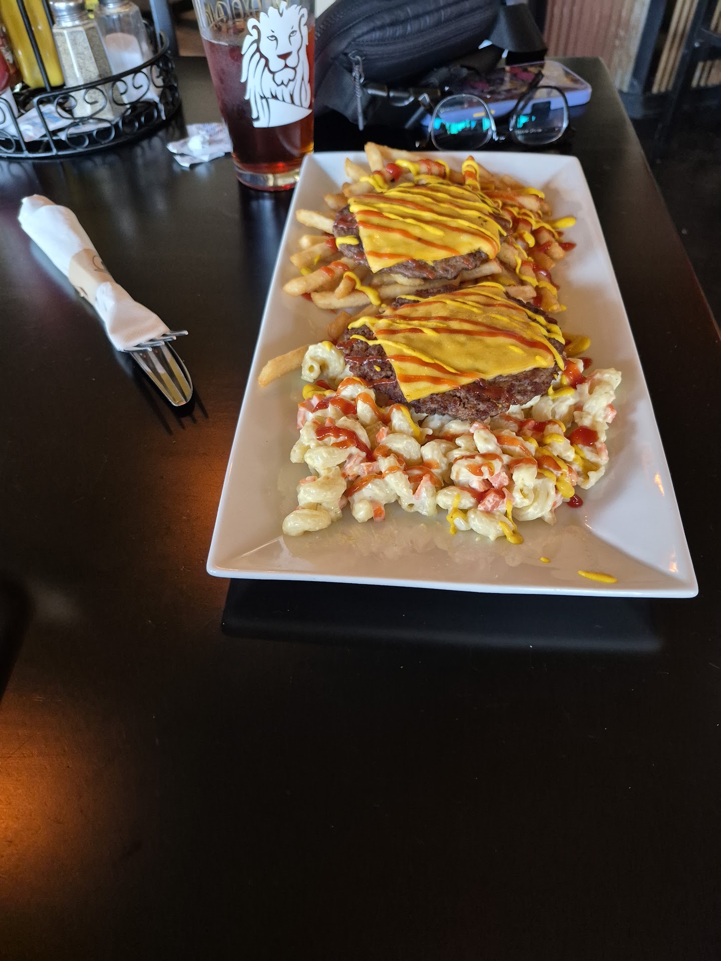 Read moreThe restaurant itself was clean and modern. We enjoyed our server as they were attentive (we were the only table.). The menu had many options and I would say it was on the pricer end for bar food. I was impressed it had a decent kids menu. The food was edible- at best. My husband ordered the queso jalapeno burger (odd they never asked how we wanted it cooked-should have left then). We questioned if we could get it medium ("oh you want it a special way? Ok, what do you want?"..."medium" ..it came well done). It came on a croissant bun that was toasted, but rock hard and not edible. My salad was ok, but not a great presentation and on the smaller side. The kids received a dessert with meals (pretty awesome), they came out after they had 2 bites of their food, worst timing ever. Of course my kids didn't want to eat their dinner. We did arrive early around 4:30, but in the hour and a half we were there, not a single person came in. It appears they were planning for a party. My young son even asked why we were the only tabe-odd apparently they don't get a dinner crowd. This place has lots of potential and I wish I could have visited in the summer as it appears it has a nice...
