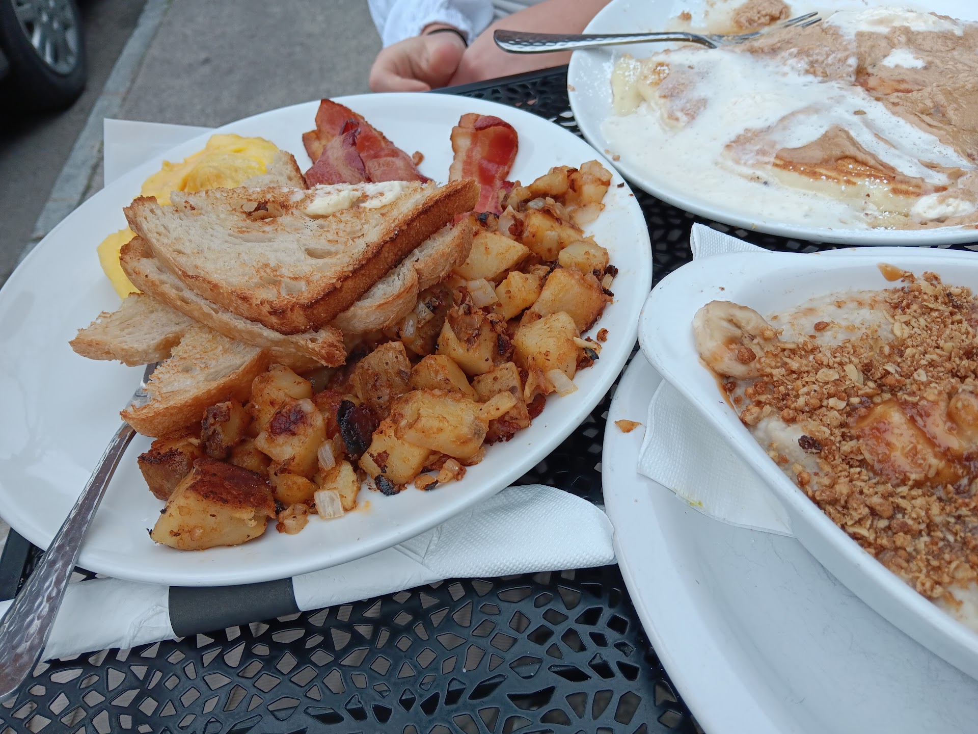 Ā Ā Ā Read moreMy sister and I took my mom here for a Mother's day brunch, one week ahead of the holiday, and while things started off great, they ended terribly! After being told it was a 20-30 min wait, we were seated after waiting just 10 minutes. Our server appeared promptly with water and menus, but things went downhill once we placed our order. While waiting for the food, we never saw our server again and had to flag down other servers for refills on coffee and drinks. The food took forever to come out, although I'm not 100% sure it wasn't just sitting on the back counter forever, waiting for our server to get the lead out and deliver it; and other than the banana pancakes, everything else was poorly seasoned and bland. I immediately wished we went somewhere else. Any additional item - 2 pcs of bacon, 3 sausage links, homefries etc., is $4.25 each and is insanely overpriced for the portions you get. Sadly this one visit was enough for me to never come back! Helpful stuff: parking is on street only; crazy small individual/unisex bathrooms - may you not need to change a baby or have a toddler in tow.; doesn't take reservations; and a very small dining room/patio area so expect long waits...