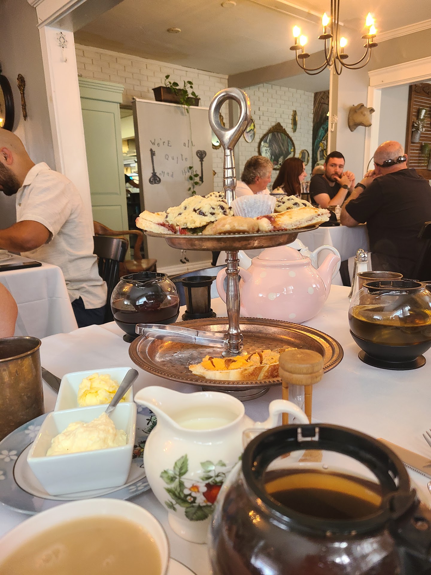 The service was okay. Like I said above, one of my party members arrived late and they were accommodating, and it was very busy, but once she arrived and ordered her tea, they brought the hot water for her tea, but she sat with no tea leaves for around 15-20 minutes.