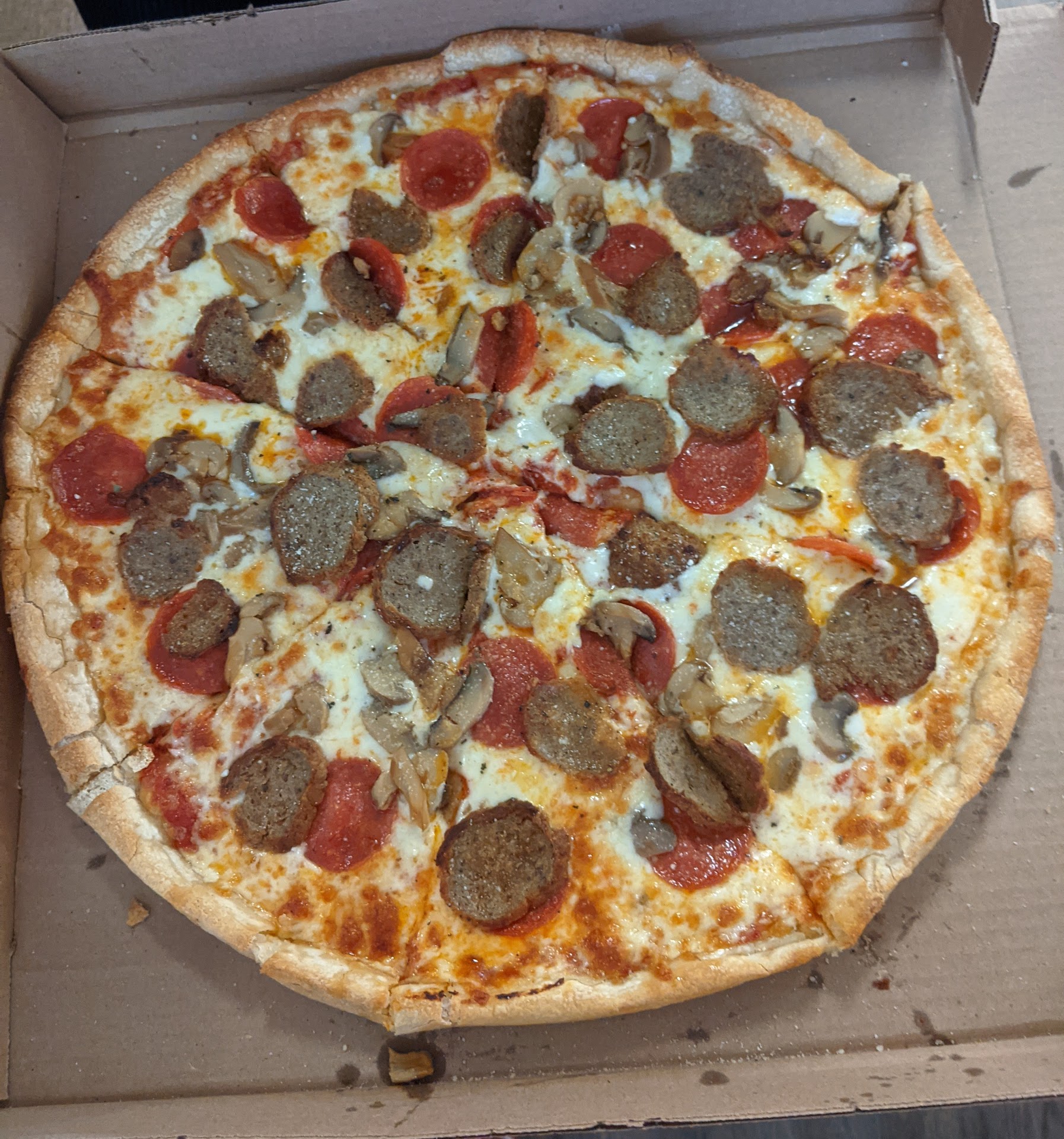 I've been going to Sinatra's since the day they opened and they really do have the best pizza in Rome right now. Well cooked, not super greasy. That crust though...The crust is where it's at if you like a medium thickness pie. It's not so thick that you're just eating dough, but it's also just thick enough to hold up to the ingredients without flopping around, and it has great flavor as well.