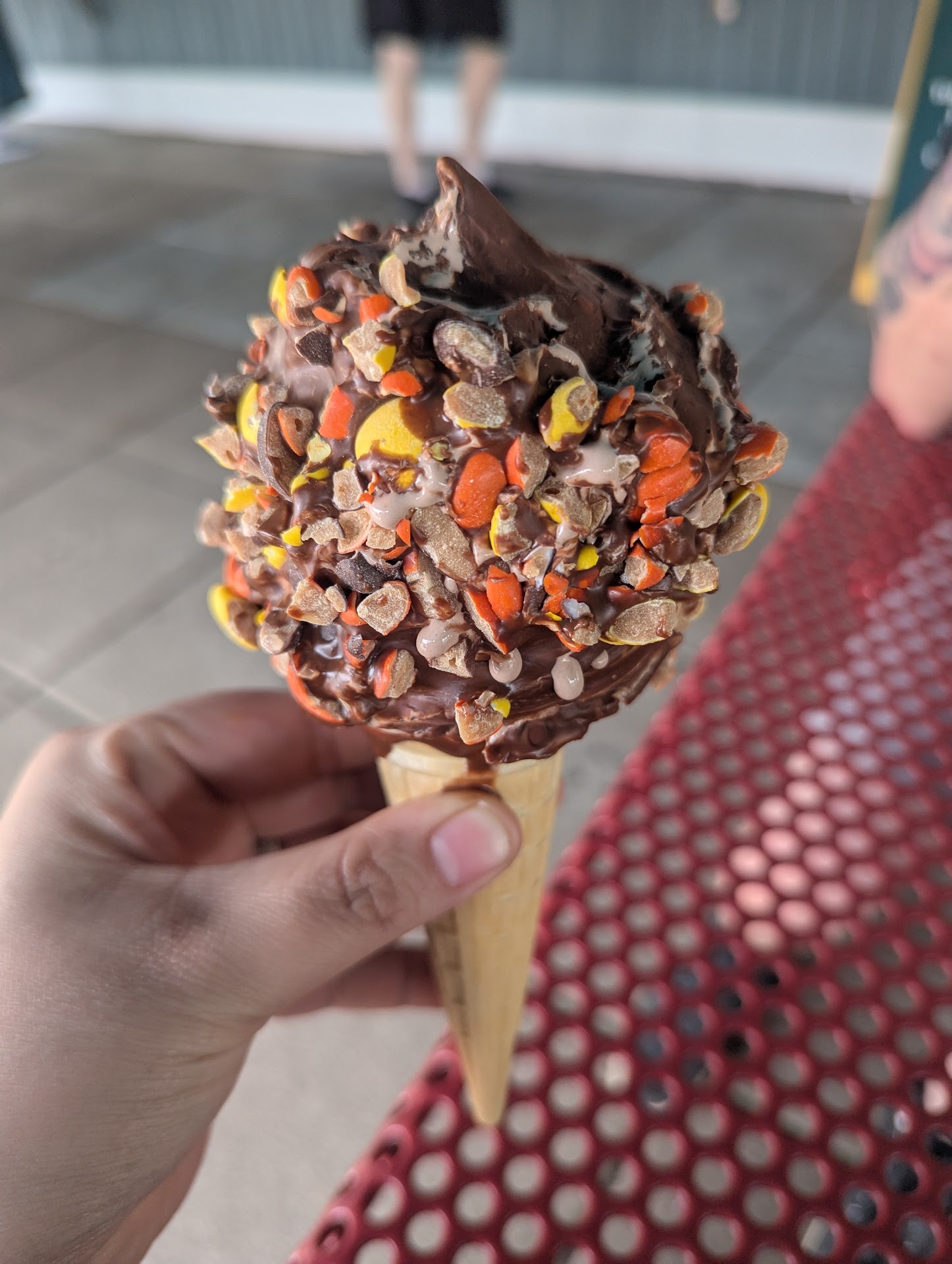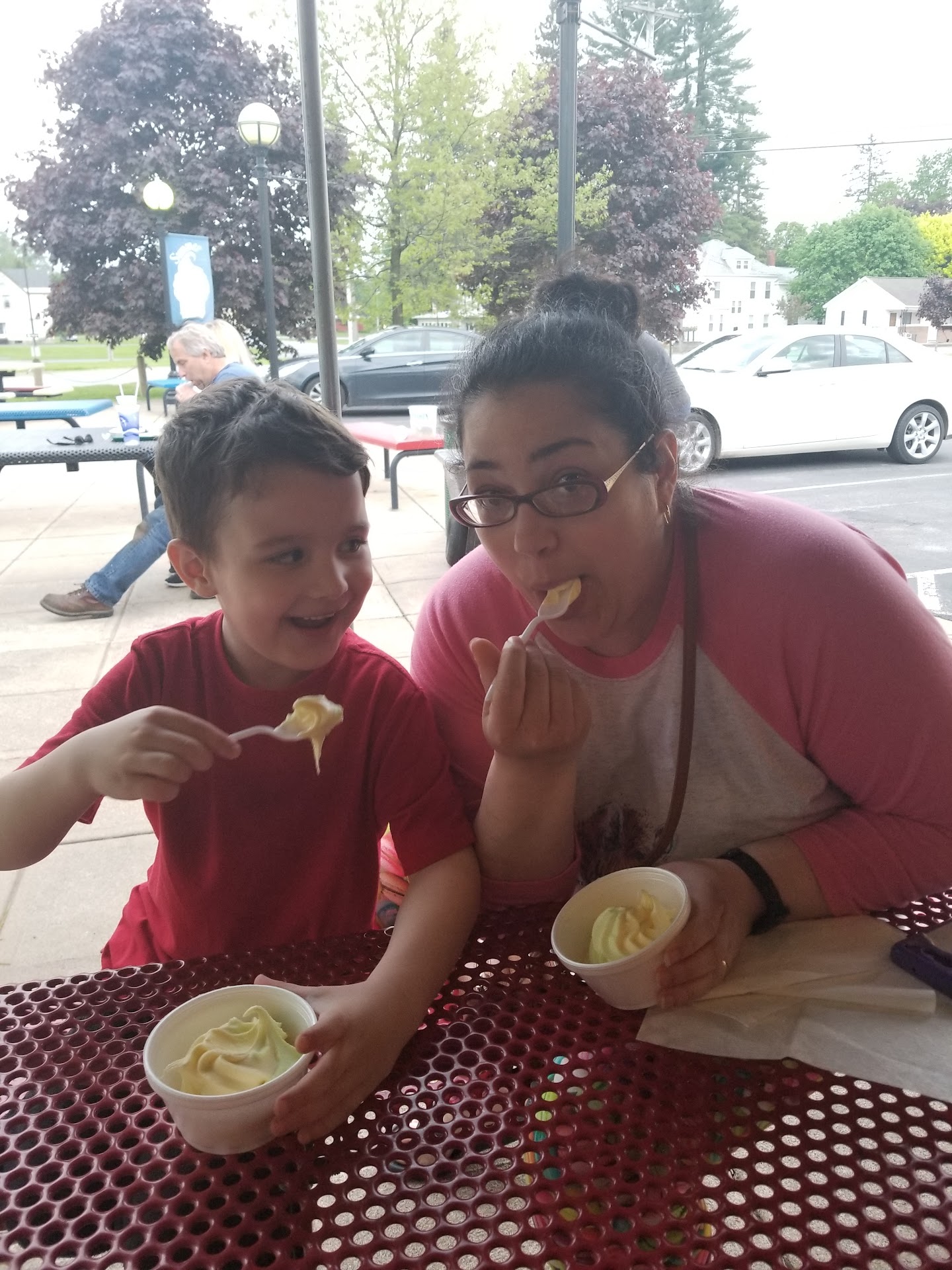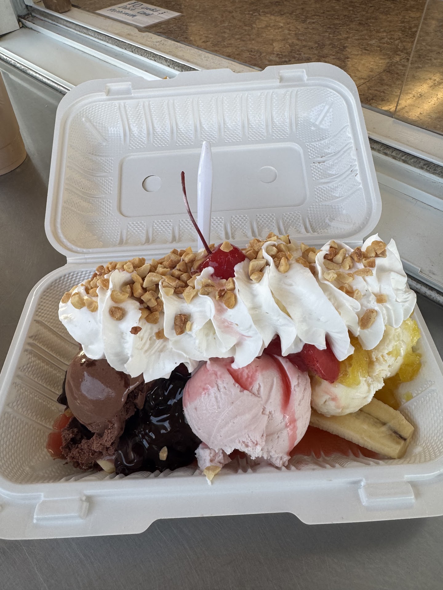 Read moreService was friendly and timely. Lots of places to sit but not alot of shade. There are frames to hold canopies but they werent up yet. There were several people who ordered food and were waiting, but it was coming out regularly and everything is cooked to order and no one seemed to wait too long. We had just ice cream, my husband got a banana split. It was over $6, but it was big (a whole banana!) ... he wasnt sure he could eat it all (but somehow managed to!! Lol). I got a small cone, butter pecan with no sugar added. I had asked if it had artificial sweeteners and was told no, but it had an after taste, so I think it did and wont get that flavor again, but it was very tasty just the same. Would definitely...