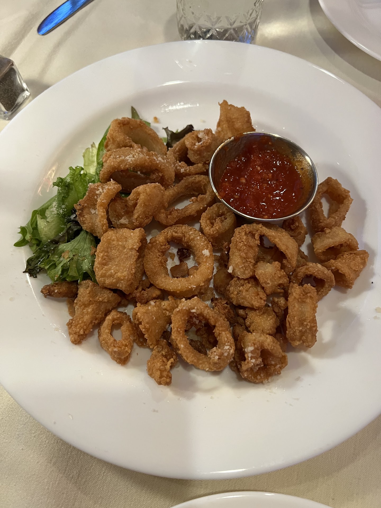What a wonderful find! While visiting Rome for a sporting event, I had overheard someone mention the name of this restaurant. When I looked it up online and saw the menu offerings, we decided to give it a try. First, it is the most adorable place! A converted house on the edge of a residential neighborhood with a lovely ambiance inside. Front of the house is a well-stocked bar with high-top tables for those who like a bar eating atmosphere. The back is tables for two and four with real linens (rare these days), quaint table-top lighting (remember those nightclub table lights from the ‘50s and ‘60s?), and small vases with simple dried floral arraignments. The wine and liquor menu is extensive (we don’t drink, but I looked), and the food menu is small but varied, with something for everyone. Part of their menu changes monthly, part is static. We tried things from both. The static offering of Lobster Bisque with a small crab cake floating in the center was amazing! Light, creamy, and flavorful with plenty of lobster throughout. The crab cake was a delicious little addition. Their other regular offering we tried of Fried Calamari with marinara sauce was fairly standard, with nice rings that were not overcooked, as so many places do. We also ordered a monthly special appetizer of Fried Artichoke wrapped in Prosciutto on a bed of sautéed asparagus with a balsamic glaze. Quite tasty and beautifully presented. Our entree specials were Chicken Marsala, served over bucatini pasta (rather than the offered mashed potatoes), and a dish called Miss Jenny, which was the house’s take on Eggplant Parmigiana - panko breaded slices of fried eggplant layered with fresh sautéed spinach and mozzarella, served atop a bed of bucatini with marinara sauce. Both entrees were delicious! Our bill was probably higher than most because we were really hungry and wanted to try lots of dishes. The service was friendly and attentive, and we got to meet the owner as we left - so happy to tell him about our wonderful experience! If you’re passing through Rome, or if you’re local (lucky), visit this lovely restaurant! You...