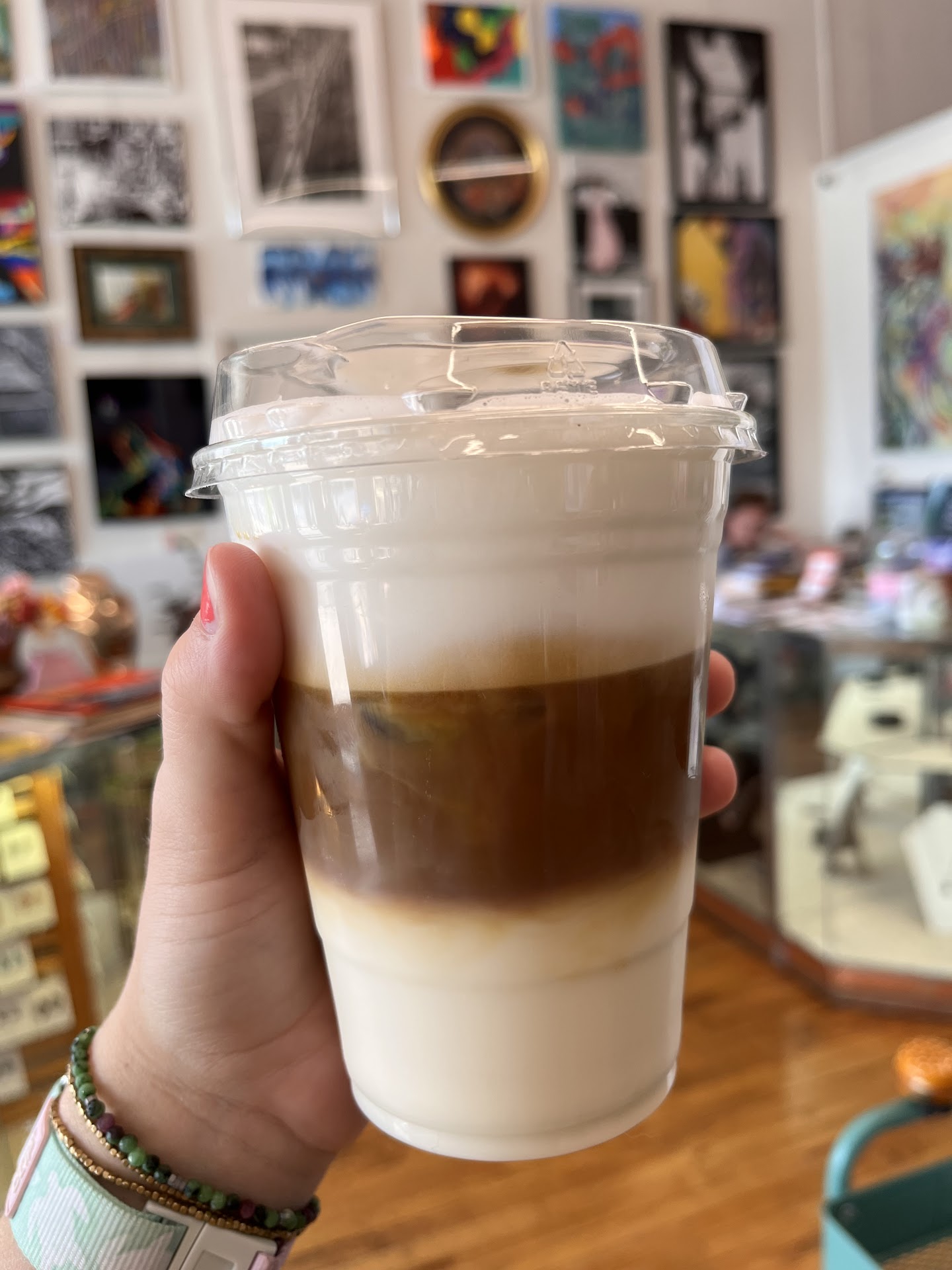 The atmosphere is great and the shop really encourages you to hang out for a while. The art gallery is always fun to explore while I'm waiting on a drink or snack!!