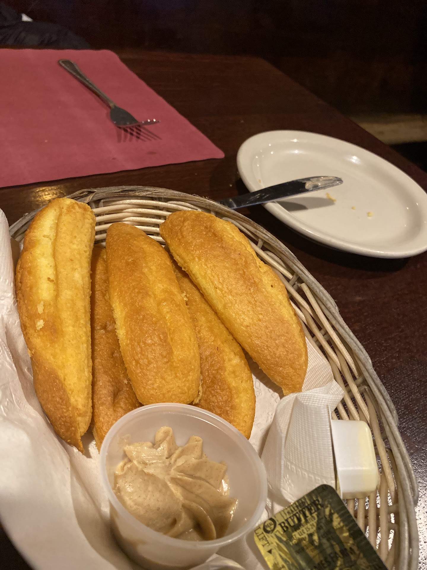 Read moreI happened to be in the Rye area & wanted to stop for a sit down dinner with hubby. After a Yelp search, I found Roadhouse was the preferred local eatery. I'm not sure why. This place presents itself as Creole/American, but I've found more flavor in a rice cake. I ordered the shrimp & cheese grits. The grits were bland watery slop that clearly came out of a box. The shrimp were decently seasoned, plump & juicy. My side of mac n cheese was an abomination. It looked nicely baked at 1st glance but one stab into it with my spoon revealed cheese soup & parboiled macaroni. My water with lemon was quite refreshing! The cornbread presented for the table was stale & dry. My husband's fried chicken, I must say, was not bad...nothing incredible. The 'Gator Nuggets app were the best part of the meal, packed with flavor & blackened nicely. Halfway through our "meal", we overheard a family next to us & discovered why the food was so bad (with a 4 star Yelp rating). Their head chef relocated. Sounds like they were really good in the past, but, Roadhouse, ya just ain't...