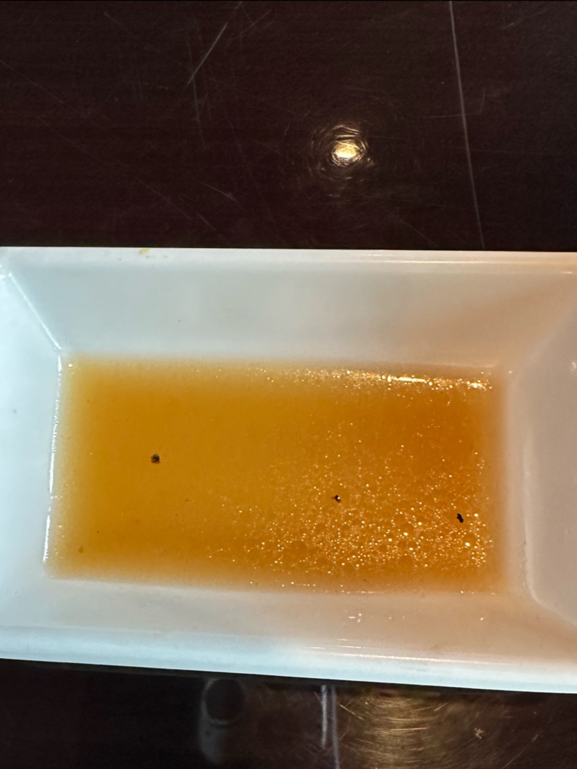 I was escorted to a small table next to the partially covered window and handed three bound menus. The decor of booths and tables accented by damaged ceiling and less than clean floors was less than expected for Saratoga. My place setting was a mix of styles, contained actual hashi and a fork, with paper napkins, and fresh flowers in water placed in Coors Light pint glasses. The space was extremely quiet, with only 10 other guests in the main dining room. Luckily, I was far enough from the bar TV and the teppanyaki that the banging spatulas and knives could not be heard.
