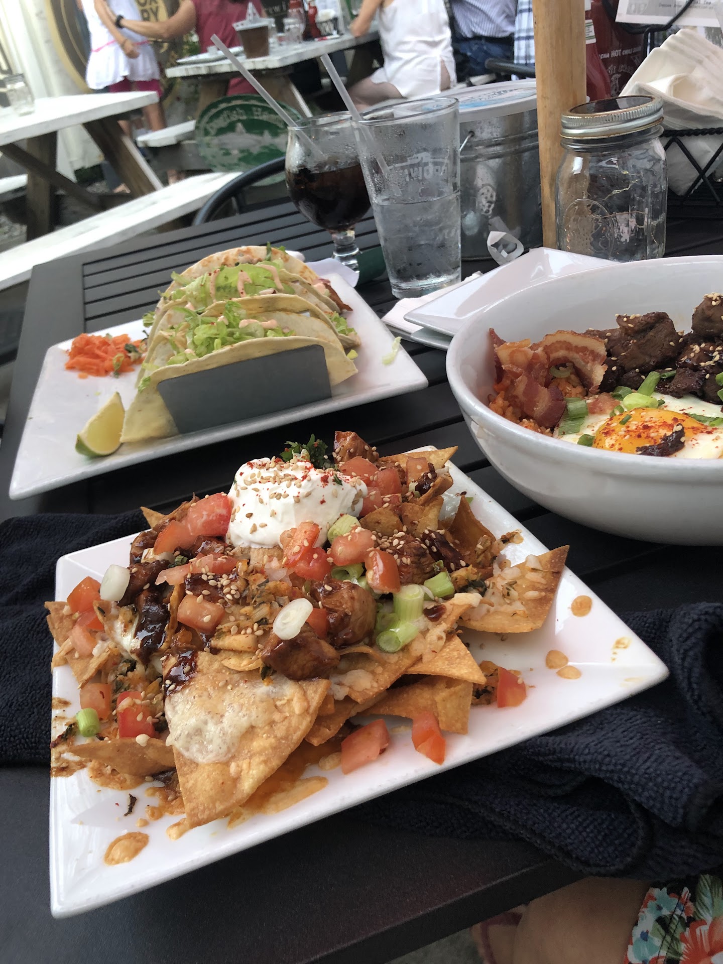 I feel terrible posting this review, particularly in the midst of a pandemic, but feel I have no choice. This restaurant is a place I have throughly enjoyed supporting for the past few years. The food was terrific, the waitstaff attentive, and the environment (such great music, both recorded and live) just a really fun place to hang out. We visited for date nights, with family, and brought friends too. Tonight was the second time I have visited during Covid. It wasn't great the 1st time, but I was determined to give one of my favorite restaurants another chance. We arrived around 6:30 on a Friday night to an empty restaurant with 3 other parties seated in the patio, one of which left right after we arrived. Our waitress was also the bartender/to go order person, which we didn't realize right away. Another waitress was responsible for a couple of the other groups. Our server/bartender (Erin) took our appetizer order within 10 minutes of arriving and came back with samples of cider/beer too. All seemed to be going well. She said it could be a little slow as the kitchen was fairly busy with takeout orders. 45 minutes later, our order of nachos arrived. I was not feeling particularly patient by then and it was a double whammy: the food took forever and the quality had changed. They were nowhere near the same. After finishing our appetizer (happened pretty fast as we were starving, never mind the change in quality ), we waited for our dinners. And waited. And waited. I went inside shortly before 8 to speak to our waitress who was tending bar. She apologized again (totally not her fault), but the kicker was that the manager/owner was literally sitting right there. He didn't apologize, didn't jump in in any way. Just let me be upset and the bartender try to help. Our meals arrived minutes later. I ordered the burrito - something I once loved and have not had since before Covid. Completely not the same dish. Tons of sauce, so much that the shell fell apart. Chicken was tough. Rice - sticky rice that is usually great - was just part of the sadness of the sauce. Erin did bring out a free drink for our time. But, honestly, this whole sad situation deserved at least a comped appetizer, an apology from the manager, something. We paid full price for an hour and a half wait for dinner, less than great food, and a waitress who through no fault of her own couldn't focus on waiting on us. If this was the first I had been here, it would have been - as it is now- the last. And a note to management: If you want to focus on your delivery/pick up orders, save yourself the money on servers and the angry customers and just go in that...