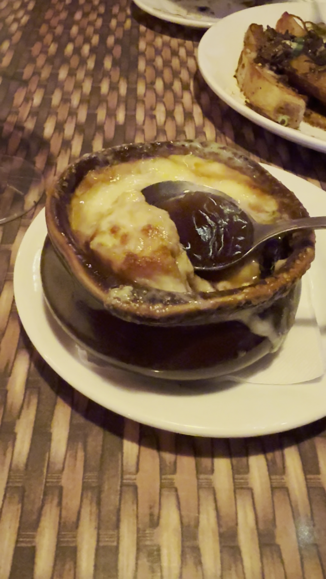 The French onion soup was the star of the show. The cheese pull was long and meandering, the stock tasted as if it was made in house from a beef consommé. They used high quality baguettes in the center and the depth flavor was mesmerizing bite after bite.