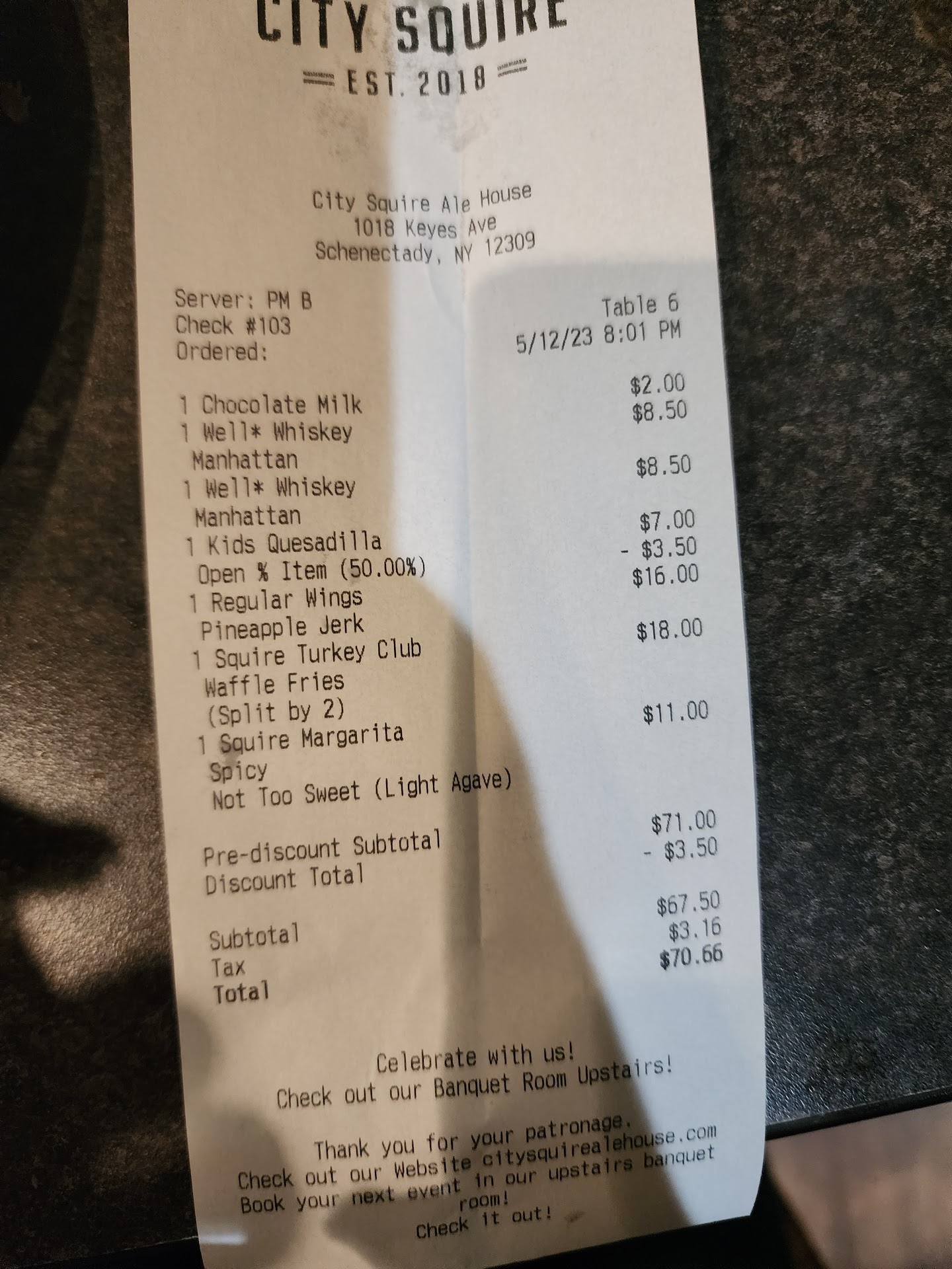 I was looking for a venue for a baby shower for my daughter and son-in-law and Googled “restaurants in Schenectady with a private room.” When I saw the City Squire come up in the results I thought, Yes!, because I then remembered the upstairs space from going to a private event there a few years ago.