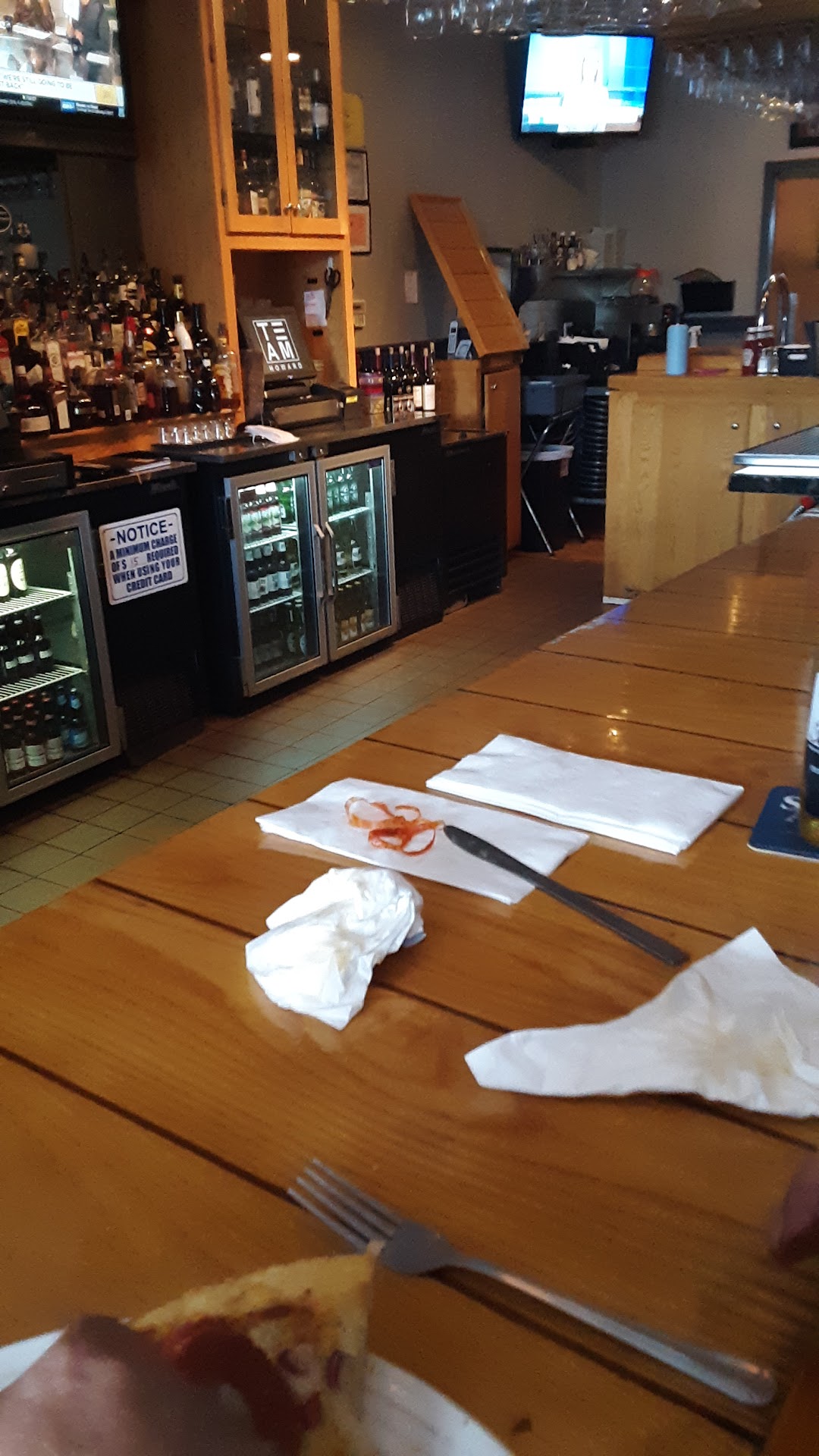 Read moreWent and ordered food to go. Ordered the spinach salad with blackened chicken, dressing on the side, garlic bread, and a key lime pie. The place was empty with a table of 3 outside. The bar tender/server was friendly and the food was good. However, I received two, $1.00 "To Go" charges. I asked what the charge was for and she (the bartender/server) explained that it was for the to-go silverware, and that the cost adds up. She did not ask if I wanted any before charging, just placed 2 sets in the bag and charged me. Mind you, I ordered to go and have silverware in my office, where I planned on eating my lunch. I did not check my order before I left, my fault. But when I got to my office I noticed I did not get my dressing NOR any protein/chicken, which was $4 extra. So, I had a $31 lunch consisting of a salad with no protein and no dressing, and 2 sets of plastic silverware, that I did not ask for, need, or want. I did ask for banana peppers, which they charged .75 cents for, which was fine. Again, my fault for not checking my order or putting up a stink about the silverware. Take my review for what its worth, but I won't be going back or...
