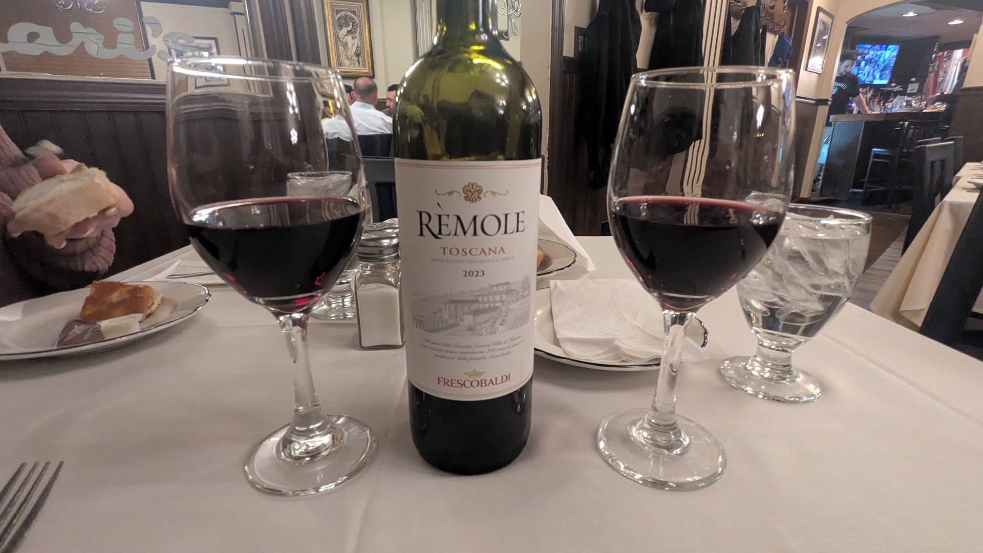 For our entrées, my wife and I both chose the Chicken Melenzano, a delightful dish combining chicken parmigiana, eggplant, and a rich red sauce. Adding homemade fettuccine with even more of their incredible red sauce elevated the meal to the next level. The entrées also came with a crisp, fresh salad topped with an authentic Italian dressing that tied it all together. A bottle of Tuscan wine rounded out the meal beautifully, pairing perfectly with the red sauce, chicken, and eggplant.