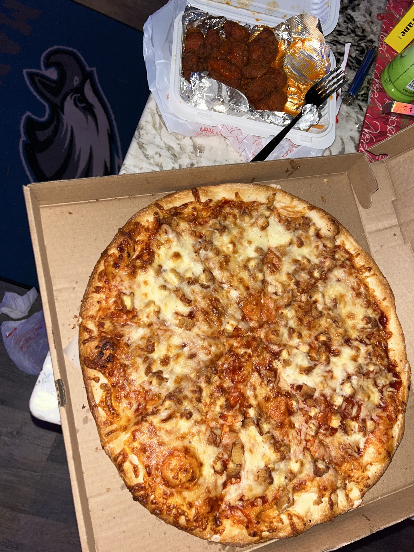 Read moreOrdered a large cheese and wings like I’ve done a dozen times before. Received the items. Took a bite of the pizza and it was terrible, had a musty/mildew taste/scent. Smelled the box, same smell. Called establishment advised them of issue they hung up. Brought pizza and box to them told them I think we got disconnected. Woman at counter called me crazy said box smelled like cardboard and they won’t refund me because a half eaten slice was put back in the box. How would I have known it was rancid unless I tasted it? I left it on the counter and told them they were scumbags. I bet that pizza gets resold to one of you wonderful people tonight....