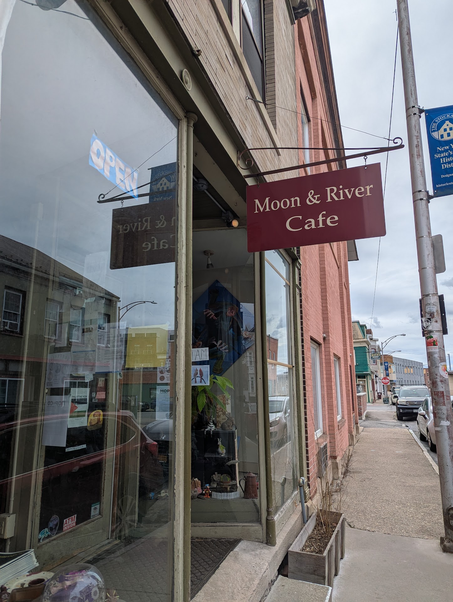 What's the first thing I hear when I walk inside of Moon and River Cafe from the guy running the place? That's right, "Are you vegetarian?" At that moment I felt at home. I knew that this was the best restaurant I will ever see in my entire lifetime. I told the guy that I was, but infact the more "extreme" and philosophical form which is, and we ALL know is Veganism and he gave me a list of his menu and IF I REMEMBER CORRECTLY gave me a verbal list of recommendations based on my DIET and what was popular. I chose the Mediterranean Vegan Pizza (My mother had it too). I saw it and it looked extremely greasy, but then when I tried it, I realized that all it was was a mixture of oil (not much though, probably less than a tbs) and mainly the juice of the vegetables that were on the bread.