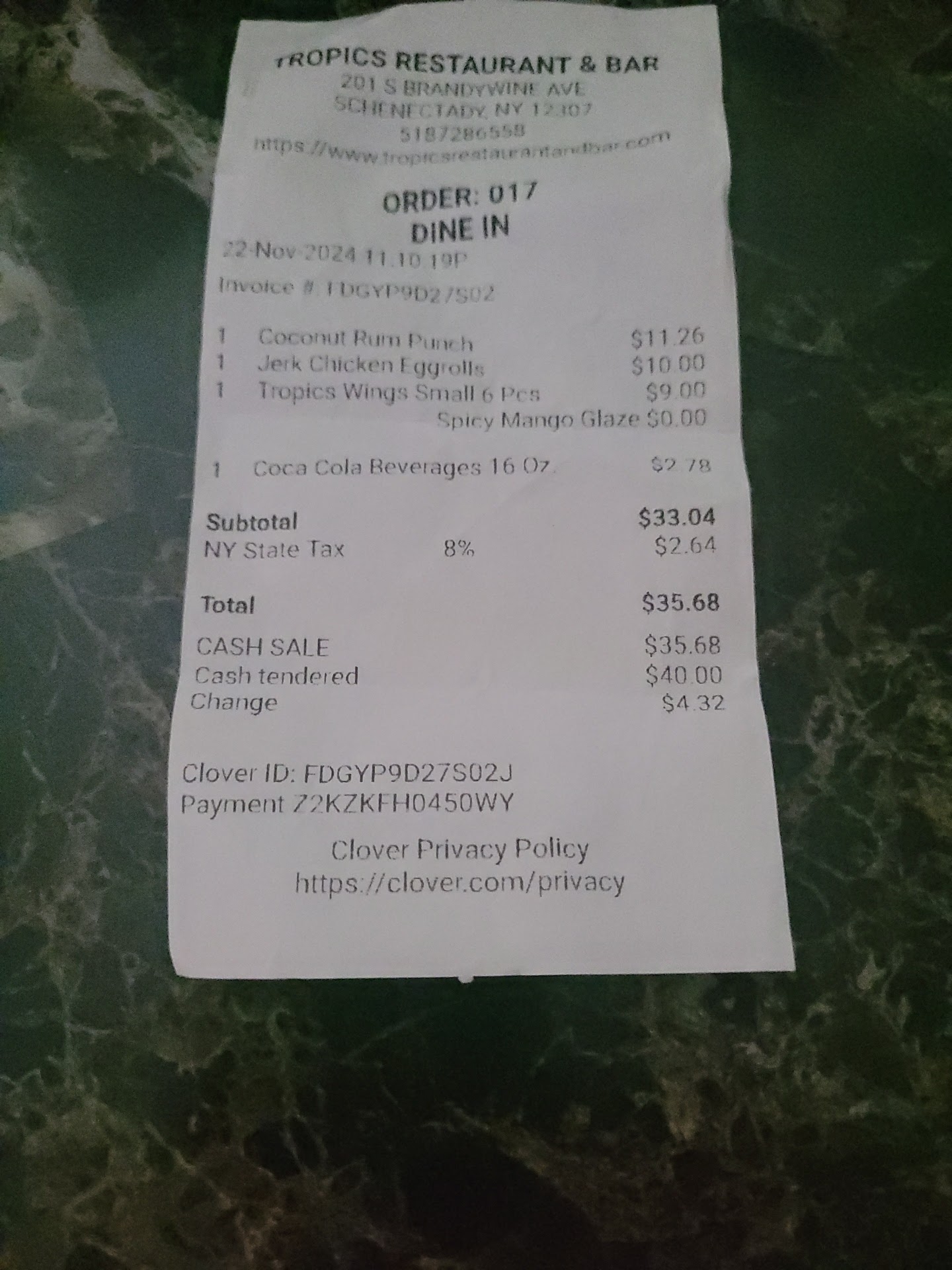 I recently dined at Tropics Restaurant & Bar with a party of 12 people, and unfortunately, the experience left much to be desired. Despite a promising start, the overall service, delays, and quality of the food and drinks were disappointing.