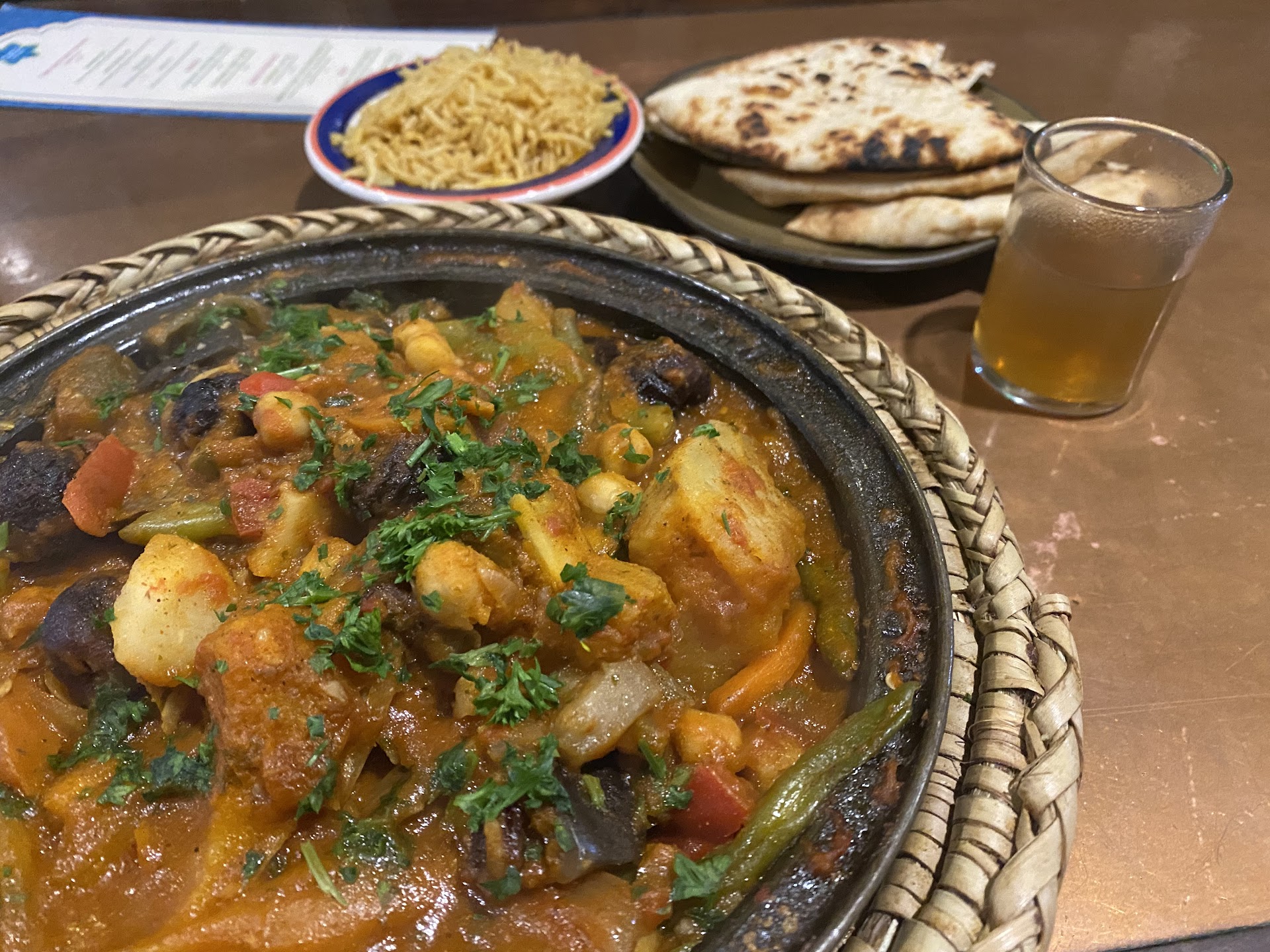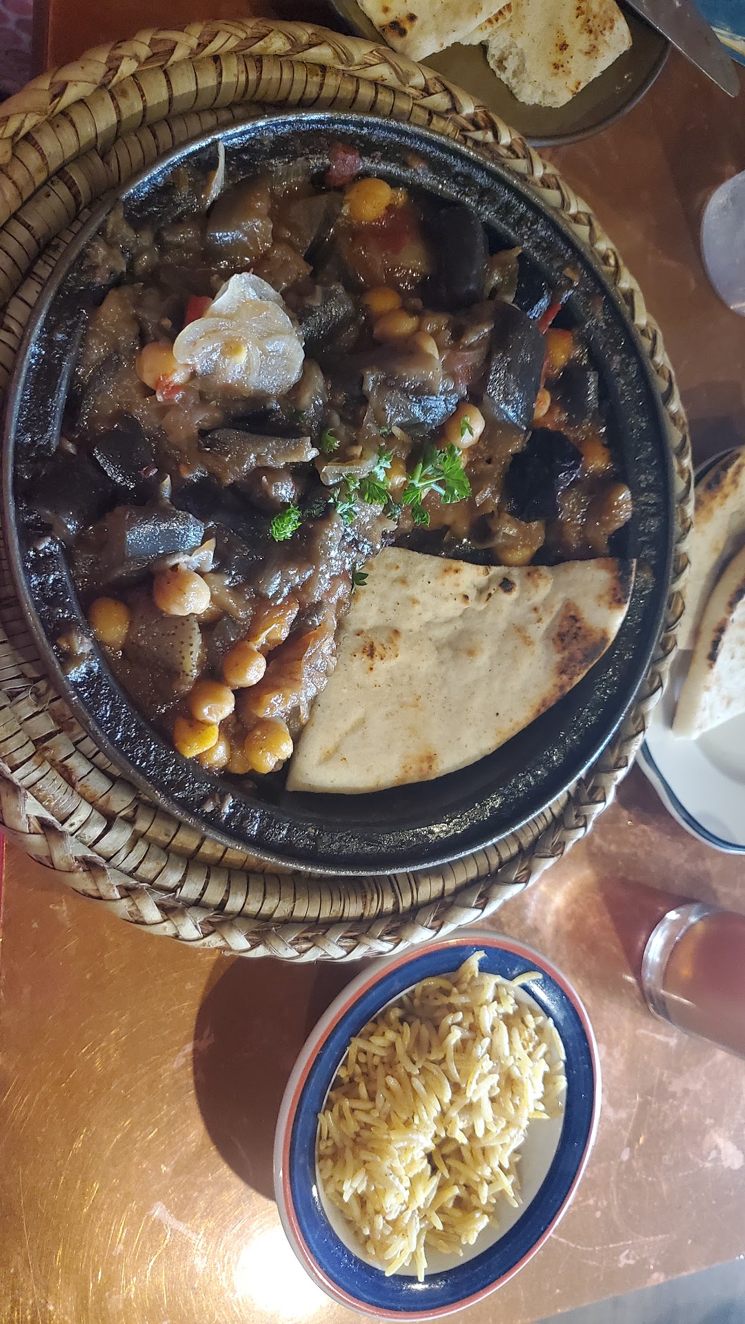 Read moreWe went on a Thursday night during prime dinner hours. There was a 20 min wait but with no reservations that was ok with us. Food was amazing and the service was great!! Well worth the wait! We were kindly greeting with water, their house green tea and menus by our server. We decided to get signature drinks - flying fig martini and the Moroccan sunrise - both very well made and tasty. We got the Moroccan ‘cigars’ for an appetizer which were very good and the sauce on it made it even better. For the entrees we selected the lamb meatballs w/ spaghetti in a special house made sauce which was very good and meat balls were big! And we got the Chicken Tagine with tomato jam, Harissa, almonds and figs - this dish was outstanding!! Both came with a side of seasoned rice and warm pita bread. We also order the charred broccoli with garlic and that was perfectly charred and very yummy. The portions were good sized we ended up wrapping the rest of our meals and ordered desserts to go. We got the cheesecake- topped with a berry sauce and crushed pistachios and baclava- delish! Definitely...
