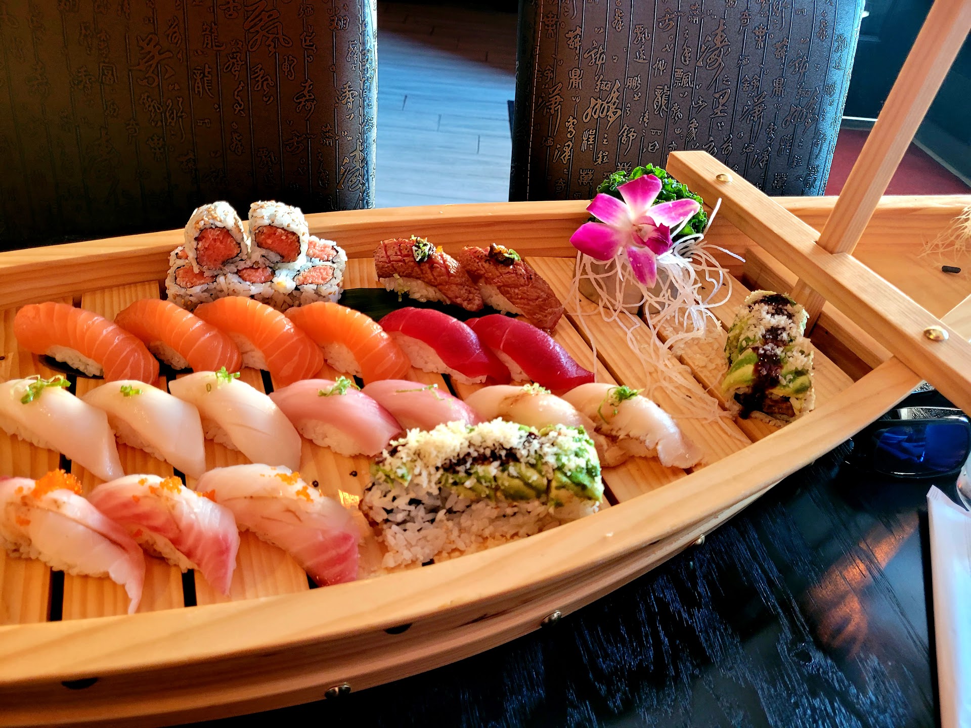 The waitress is hilarious! Totally rude, she could care less. She actually wears a black t-shirt that states, in writing, that she doesn't care. When we asked where the drink menu was, she said they only serve standard soda drinks. I asked for an Asahi Japanese beer, and she said they don't have it. I was just about to give up and drink water when I saw the stainless steel shape of a Sapporo peaking out of the shelf on the wall behind the sushi chefs. She did bring me a cold one of those with a glass. When she brought out my miso soup, she plopped it down, spilling some on the table, but she was already looking and walking away. She pretended she didn't notice. The place was not busy. There were other wait staff. It felt like a Seinfeld episode. The sushi was good, the menu was great except there was no drink menu. I've had sushi in Tokyo, Japan, numerous times, and this place was pretty good for being in Upstate New York. Kudos for the obnoxious service! Thank you, Mr Wasabi, for a memorable...