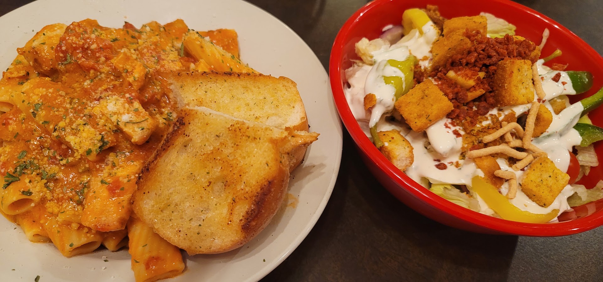 Ye Olde Pizza Pub in Oneida, NY is Awesome Awesome. The young staff up front were all very polite and helpful. The menu when you walk in is clear and nice looking. We were able to pick our own seats which was cool. The dinning area is very clean, same with the bathrooms. We ordered salads and riggies for dinner. The salad bar is very clean and definitely full with all you need. The self serve drink machine is cool because you can get whatever drink you would like. We sat to eat our salads and our riggies came out maybe 5 minutes later. Wow that was quick hahaha. The riggie sauce was great and not spicy at all. The noodles were cooked perfectly and the dish was hot when it arrived, definitely a plus. The garlic bread was a nice touch that I didn't expect. It was soft with a little crisp which is how I enjoy it. The waitress came twice and didn't hover which I like lol once we were done we had no problem paying or leaving the parking lot. It was very smooth and the trip totalled 45 minutes. Perfect! Thank You Ye Olde Pizza Pub, we enjoyed our...