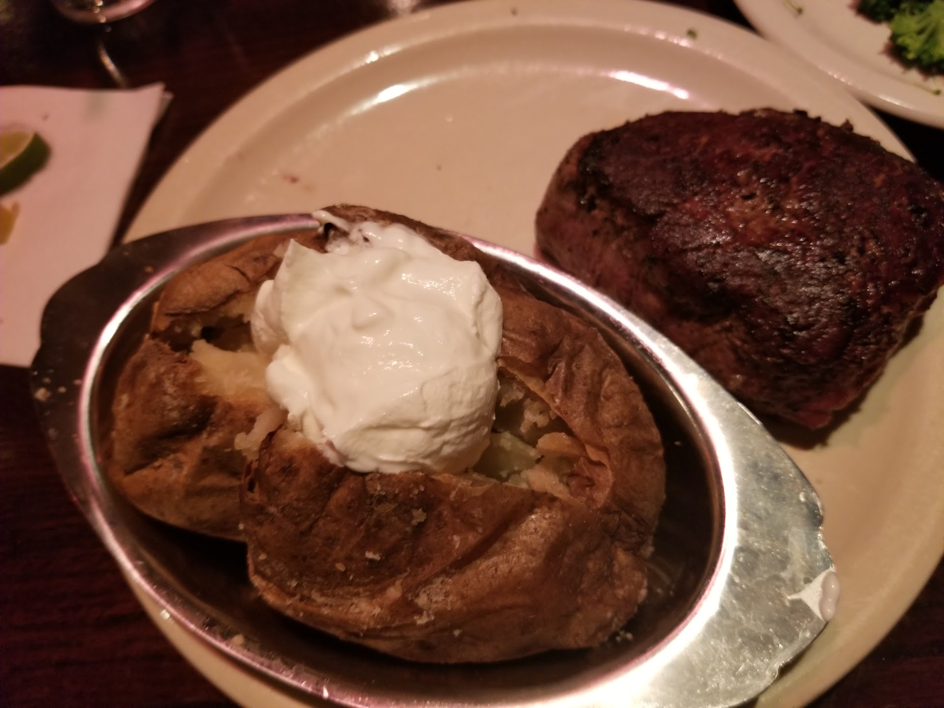 Read moreI'll start with the food (that was actually correct) was delicious. Our waitress was very nice and helpful. I'm struggling with this review because things weren't perfect and I had higher expectations but I think we just got unlucky. We had 7pm reservations. Thankfully we got there early because it took us 4 laps around the parking lot to finally find a spot. After wading through a sea of people, we checked in to the hostess at about 6:55. We had to wait standing in a cramped and busy hallway in front of the bathroom and then didn't get seated until 7:45. and that was after they brought us to a table that hadn't been bussed and made us go back up front to wait again. Everything else went well until our main courses arrived. 3 out of 4 meals were excellent, my wife had ordered a medium rare filet mignon, but instead received a medium rare pork chop. I can't begin to understand how that happened. My wife has food allergies and wasnt comfortable at that point letting them remake her meal with a mistake that could make her very ill. They took the meal off of the bill and apologized. This seems to be the case with all restaurants but my wife was very understanding that mistakes happen and didn't cause a scene or let it effect the rest of the tables enjoyment, so the restaurant left it at that. I think that it would've been in better taste for the restaurant to cover her drink or her salad as well. I just don't understand why when a customer reacts to a mistake with understanding and poise (like people should) they aren't treated as well as people who are jerks. somehow taking an inedible meal off a bill is a favor. this isn't just delmonico's, it seems to be the industry standard. we'll undoubtedly try to eat here again as the food was very good. and hopefully our luck will be...