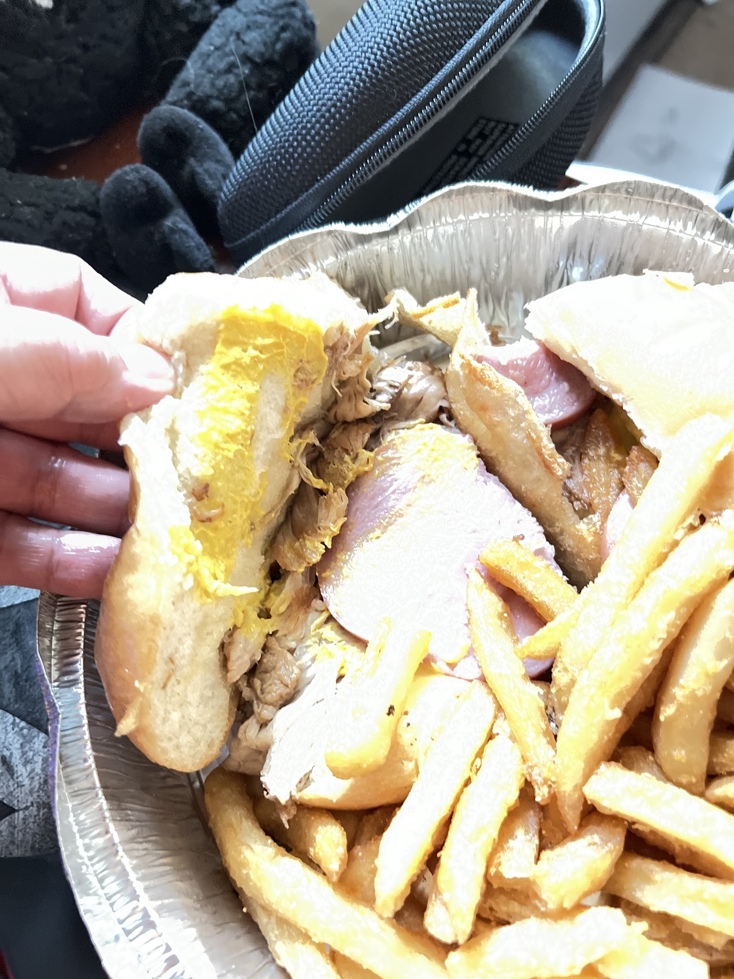 Read moreI ordered a Cuban sandwich and two empanadas. The Cuban had the smallest amount of ham and the tiniest pickles. The French fries served with the sandwich where probably re-fried given how greasy and hard they were at the same time. The empanadas were undercooked (the outside not crispy or bubly) and also soaked in grease. I literally drained grease & condensed water from the container. In addition they use containers that trap heat and cause things to get soggy (the metal ones you crimp the lid on). The only saving grace is the employee who took my order was polite...