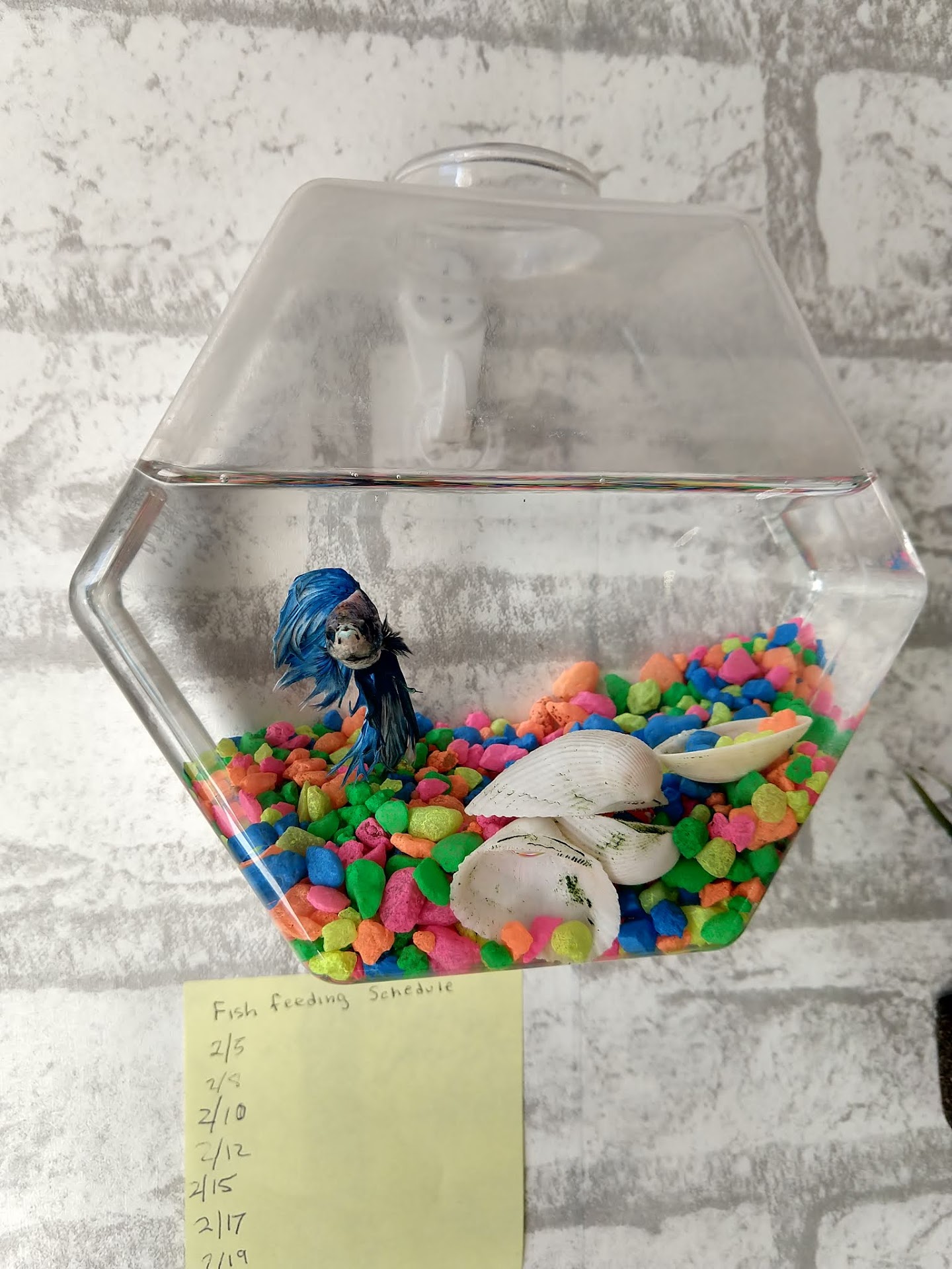 Again, I really enjoy the service and quality of Feng Cha but I hate to see an animal needlessly suffering. I am posting this review in hopes that the owners see it and either rehome the fish or create an appropriate habitat for it at which point I will gladly change my review to a well-deserved 5 stars. It is important to remember that fish are sentient and should not be used as decoration with no consideration to their well-being. I encourage the owners to look into the bevy of information on proper beta fish care available online. When the beta fish is cared for humanely and compassionately customers will be able to admire the beauty of the fish in a way that is respectful...