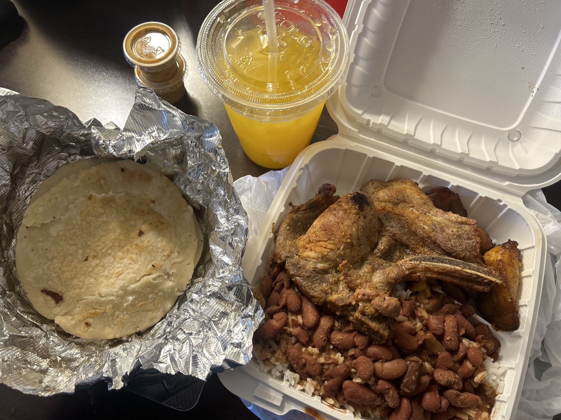My husband had the stewed chicken and baked chicken with Puerto Rican rice and a chicken and cheese empanada. He enjoyed all of his food.