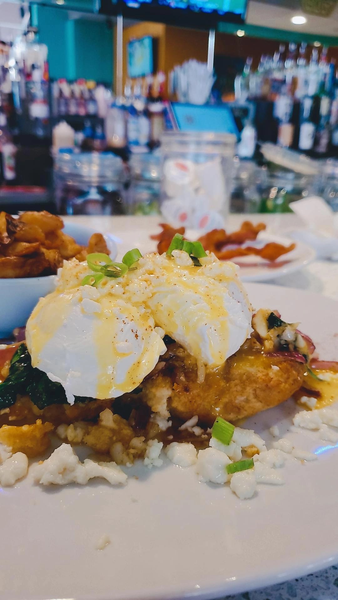 The breakfast bowl arrived with lukewarm hollandaise. That description is generous as I would say it was actually cold. The over easy egg was actually over hard, which defeated the purpose of swapping from scrambled.