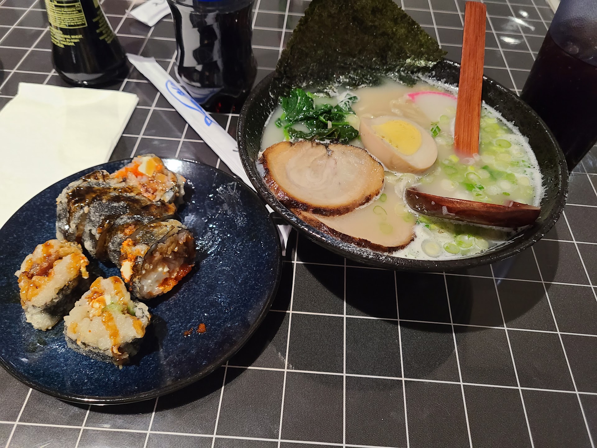 Ocean Sushi 2 was found by Gweg and Gary in 2024. Those same 2 boys famished, were not craving a crisp tortilla covering melted cheese and fresh chicken, but instead they were craving something more light, crisp, filling -sushi!. We did not find Ocean Sushi 2 on google or on social media. Our dear friend Beccy suggested it to us and we could not thank her any more than we already have for her advice. My most recent visit to this establishment took place with Dig and Gweg. For Gary, this was 1/2 dinners for him that night, but he spared no expense. We were sat quickly and offered water from used 소주 (soju) bottles. Nonetheless, the water was cold and refreshing. We ordered our usual 3 rolls per person and some side dishes and appetizers. Dig caught his eye on the jalapeno poppers which were a hit, for him. I could have counted on one hand how many tables were filled when we went, but that is why our food cam swiftly with no errors. Waiting for our food for that brief amount of time we listened to the non-copywrite music played on youtube for everyone to see. The atmosphere also had fun LED lights for the young inns to enjoy. In addition there were Korean words and their translations on each wall and it was fun for Dig and Gweg to try and pronounce them. The food came and everything was a hit as usual. We all finished our plates and had to increase our belt sizes one notch by the end of the night. We were offered free ice cream, but politely declined. I did find out that free ice cream is only offered on weekdays and not weekends, however I would be surprised if it would take a toll on their finances to offer free ice cream on weekends too. Safe to say that this was one of many excellent dining experiences even though it comes in second place for sushi. This is Gary signing out...