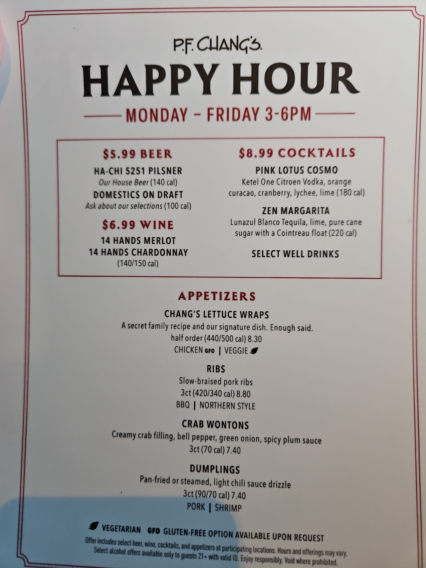 Took a friend to PF Chang's on New Year's (2024) for a dinner; he never been there, and I believe in opening up your horizon and trying new foods. Appetizer - We got the Lettuce Wrap. Absolutely delicious, as always! Was the perfect amount for the 2 of us to eat, saving space for dinner. Always loved that the Lettuce is a smaller size; allows you to taste the seasoning in the the actual food itself, and not be watered down by the Lettuce. Dinner - Between the 2 of us, we got the Korean Glass Noodles (combo) and Chang's Spicy Chicken. I loved the fact I was able to exchange the Rice with Glass Noodles for my meal (didn't know that in the past). My Spicy Chicken was good sized Chicken. Was easy to hold with the Chop Sticks, no knife needed, nor was it little midget Chickens. Full of flavor, and a great temperature; been to places where the food was blistering hot, or cold. My friend told me the Korean Combo was great. The fact he took the leftovers home, tells me he truly did like it. Why would you take something home, if you thought otherwise? Dessert - This is where our waitress Ky (I believe that was her name) was phenomenal! I personally never had dessert there. I asked for her personal opinion on the desserts. She mentioned the Banana Spring Rolls, and Chang's Apple Crunch. She put great detail in the food; something you very rarely hear from a food server in general. My friend and I agreed to try both, and just split them in 1/2, so we could both try them each. The Apple Crunch almost tastes like a handheld Apple Pie to me. The Spring Roll was a little different. Never had a heated Banana. It was exact what is stated; a Spring Roll, but stuffed with Banana instead of vegetables. Forget which one it was, but it came with a Pineapple Coconut Ice Cream. I am not a big Coconut person, but that Ice Cream was AMAZING. I almost want to buy a bowl of it right now, while typing this out. Fair warning those 2 desserts, they are more of a group size, and not a personal size. So, we had a lot to eat, and you can't take leftover Ice Cream home. Price - I know PF Chang's is a little higher end for restaurants, so I expected it to be high. My grand total actually came to $92.88 (not including tip). Which, I didn't think was too bad for the amount of food we received. $46.44 per person is pretty much what you'll pay at any other restaurant (if not lower). Especially with having drinks, appetizer, dinner, and dessert. Atmosphere - I am not sure what happened. In the past, it seemed like people were so serious looking, and didn't talk much; but that was pre-covid. This time around, it was calm, and Ky (waitress) had a glowing smile, perky, and just made the place feel very welcoming. Even the woman that worked in the entrance...