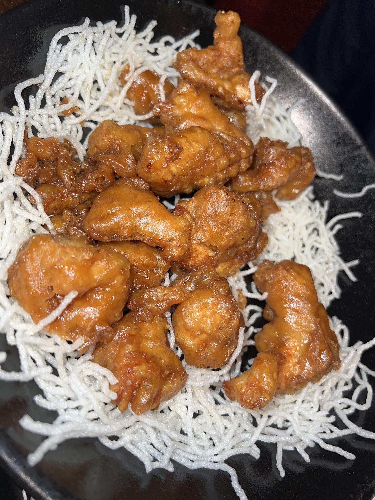 The steamed dumplings came out first but to my dismay were completely cold. The sauce was delicious but the dumplings were so cold I was concerned they weren't even cooked.