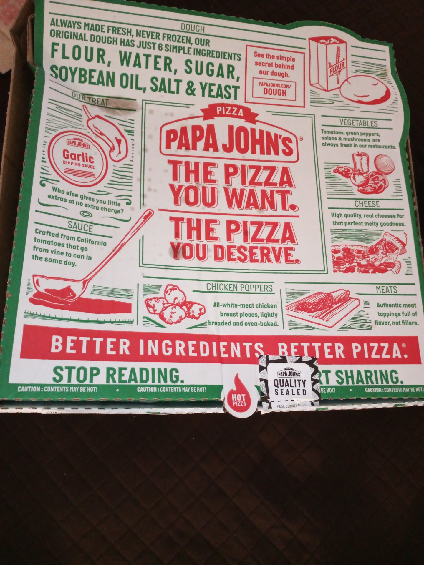 Groan. I foolishly ordered a pizza because of that damned "better ingredients, better pizza" commercial. I'm too freakin' old to still be falling for such foolishness... but I'm also notoriously cheap and couldn't pass up what I THOUGHT was a good deal. You see, Papa John's was running an online special: 50% off all online orders. Wow! Surely there must be an innocent and legitimate reason for such a whopping discount. Spolier alert: the pizza is just terrible.