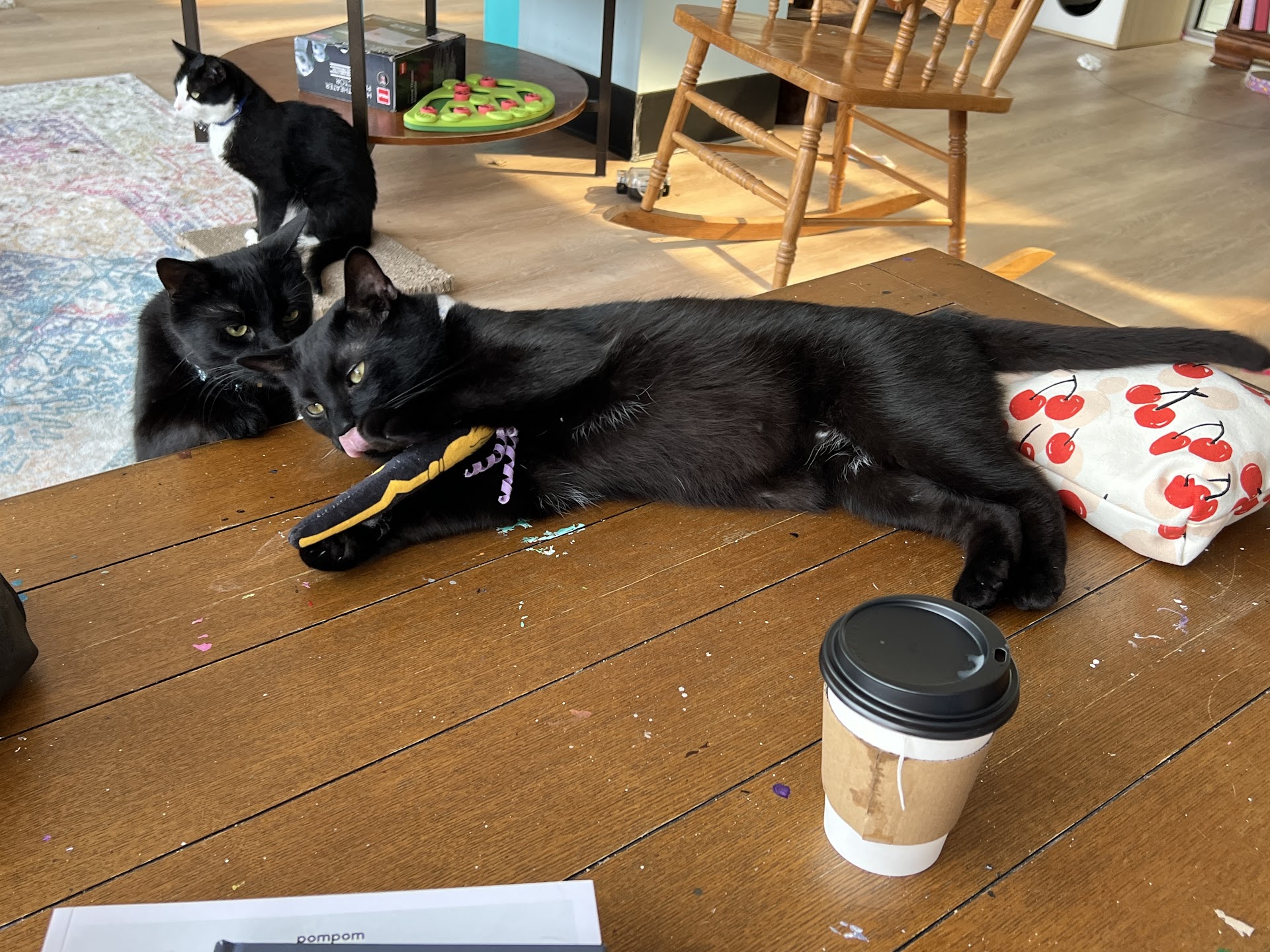 Read moreThis was my first time visiting, but it won't be my last! Everyone was super nice, and the kitties were so adorable! I was there for the holiday drag brunch, and it was such a great event! I had been to drag shows before, but never a cat cafe, and my friend had been to cat cafes (Pawsitivitea specifically!) before, but never a drag show, so it was a really nice experience for us. The cats were so fun, and it was also really nice to be in a space with other people who "get" cats. Not to get too metaphysical about it, but I think cats demand a type of presence that isn't the norm in most other places in our culture. It's nice to be around other people (and kitties!!) who really value being calm, respectful, and mindful of boundaries and subtle communication. It's very peaceful - and the good food and drink certainly help too! I really appreciated that everyone was so conscious of dietary restrictions too. It was on the sign-up form, and they asked me again at the counter. Everyone was really, really serious about not accidentally serving someone something that they can't or don't want to eat or drink. I'm lactose intolerant and have definitely been dosed with full milk in some coffee places, so it's very noticeable to me when people are careful about it. Thanks everyone, and I'll see you again soon! Kiss the...