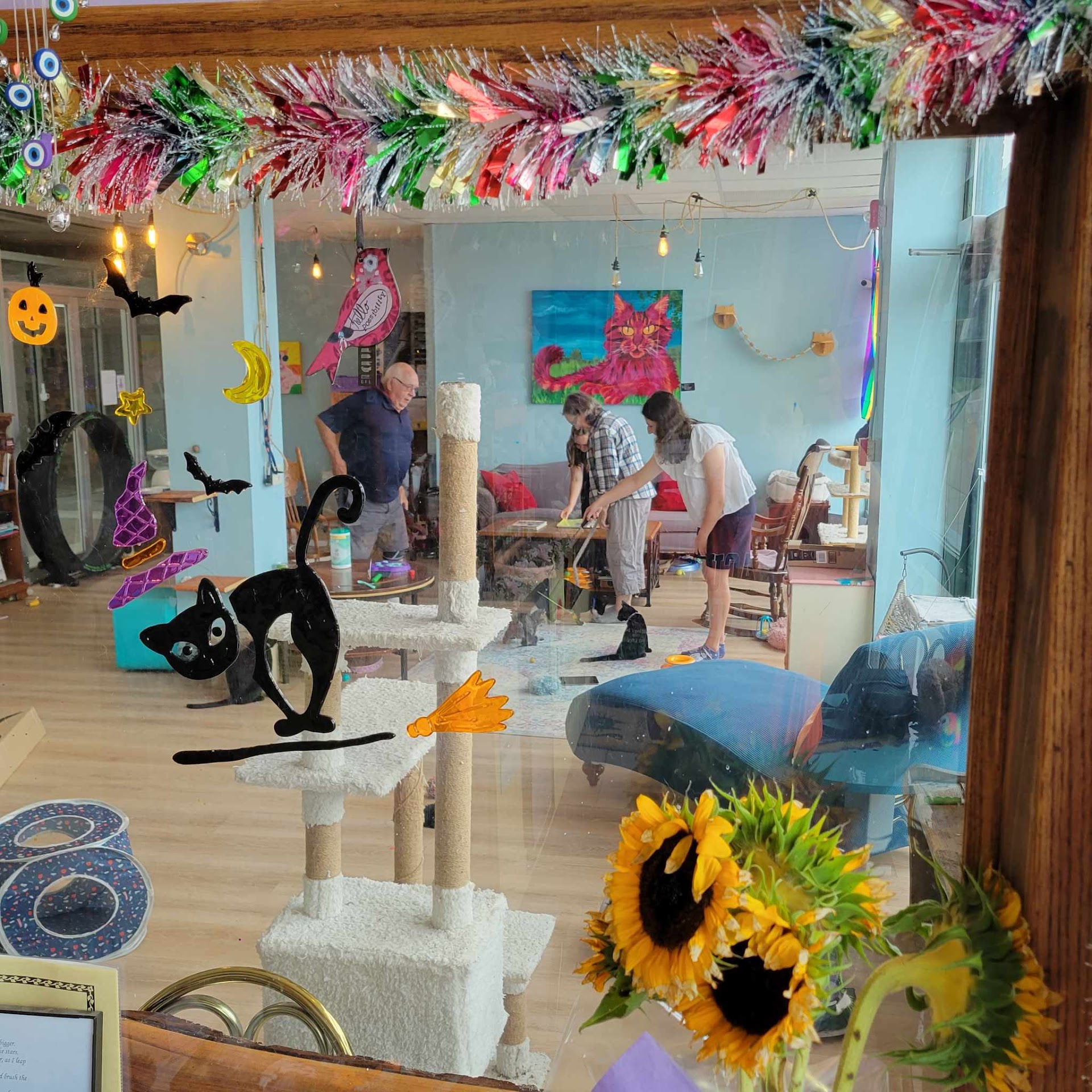 The kitties were so playful! Some were a little skittish around the people, but they love (LOVE) the feather toys. The staff warn against picking up the cats since it can set some of them off, which was a perfectly normal boundary to set and everyone followed it. They have a ton of books about cats, binders full of stories about their past adoptions, and the whole place looks like a great hangout for the animals. They all looked happy and healthy, which was wonderful to see.
