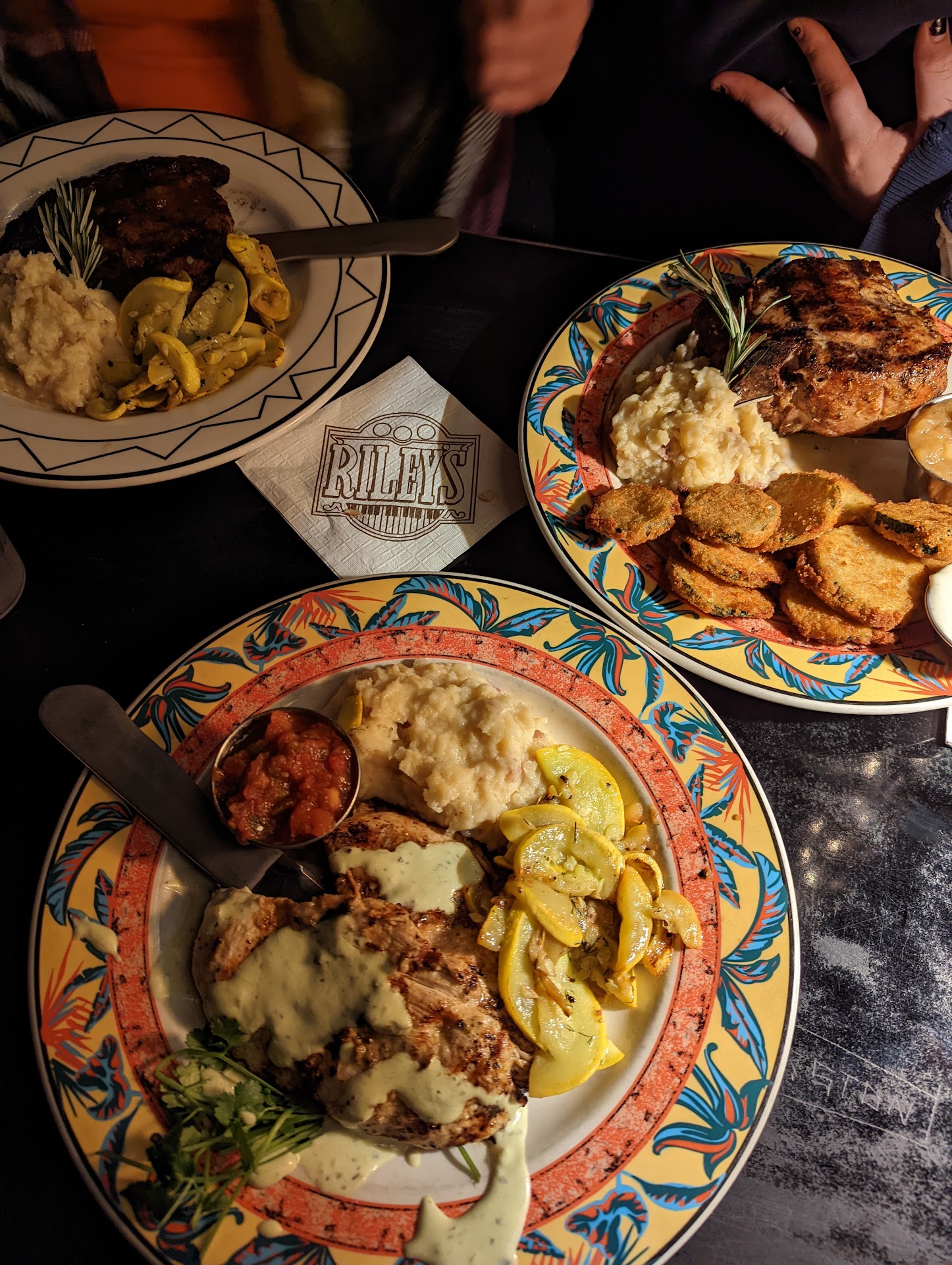 Read moreI tried Riley's last night and it was pretty good! They have live music every evening as far as I can tell, which is a guy playing the piano. Only problem is piano was quite loud which bothered me, but your mileage may vary. I got the 14 oz steak, which was great. It came with mashed potatoes and asparagus. The mashed potatoes were amazing and I could have eaten a whole plate full of them. The asparagus had a nice coating of lemon juice but sadly was somewhat undercooked. Wait staff was friendly and kept checking in to see if I need anything, although it was a bit weird considering they didn't take away the empty bread bowl and plate with used butter wrappers on it. Price was what you would expect for a nice steak, although actually quite cheap compared to something like Outback Steakhouse. Overall a pretty darn good experience -- I only rated four stars because I personally thought the music was too loud and the other small details I mentioned. Not necessarily an all-star favorite of mine, but it was good and I...