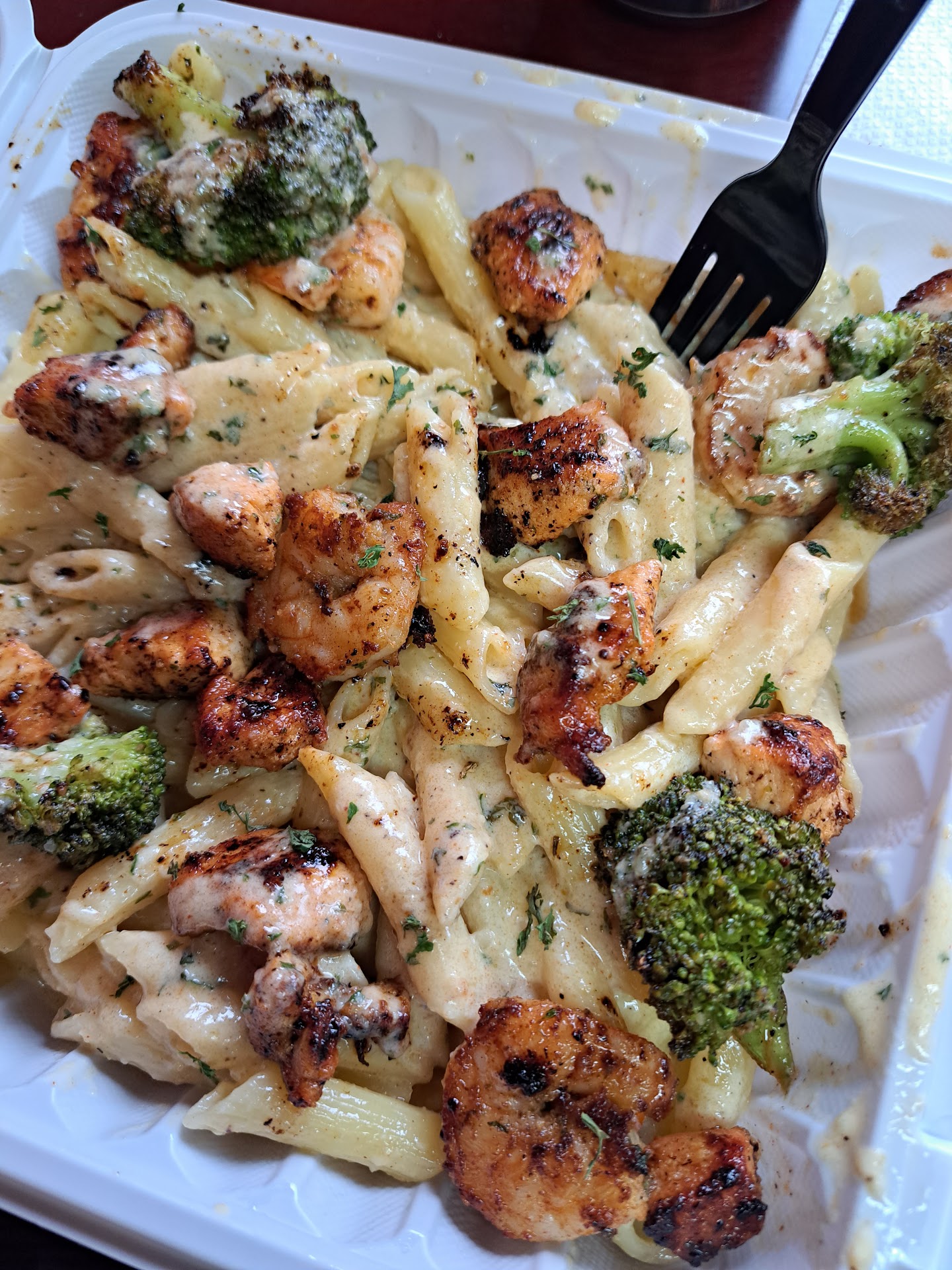 I cook and I'm also a foodie. My kids mother wanted his food. Really bad. I gave in saw this ribeye. My first sign when I got there should of been no steak like I wanted. I finally decided something with salmon shrimp loaded mash broccoli and a side of macaroni and cheese and she got fried ribs. Let me say the owner and cook was nice. It was very clean. Good R&b music. Didn't rush me. Great customer service. Now my salmon was burnt and felt like there was a jar of onion powder on it. The shrimp was good the sauce was good. I loved the broccoli the best with the salmon sauce. The ribs was good nice fried crunch. The custom sauce was a nice touch (Houdini). We didn't like the macaroni and said the yams had a pound of sugar. Instead of us trying to steal a moment without the kids. We could of ate with them and We got them pizza. 80$ My order was 60 two meals and I tipped. Down the drain. I try to support our people but not many in Syracuse actually got good food. Welp ole boy got my money for the year. Along I attached my pictures to remind the reader and me. I could of stayed home and cooked or ate Burger King. I was forced to give...