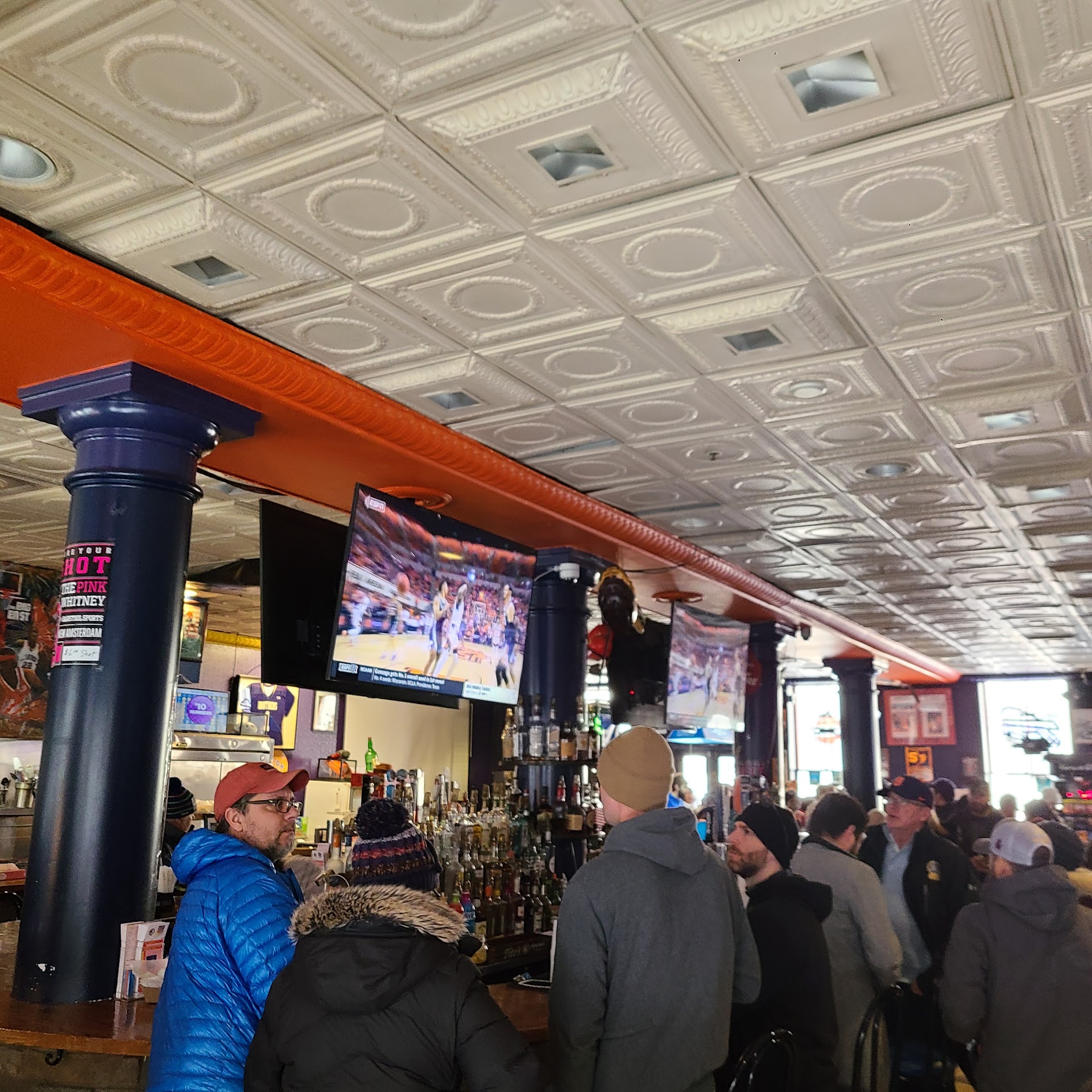 Read moreNever a cover for UFC PPV which is why I went! Most places in Syracuse don't have the PPV's nor ESPN+ to show UFC Fight Nights. Not sure if they show boxing PPV. I did see an advertisement poster for Furry vs Wielder 2. They didn't have a Bellator PPV the week before on DNZS. I tried the blackened chicken Philly wrap, wasn't bad, chicken was a little dry and overcooked, the grilled peppers and onions helped the dryness. Fry's were a generous portion, crispy and good. Lot's of Craft beers on tap but I was DD. I really wanted to try some of the brews I haven't seen before. Looks like a great bars to watch any 'Cuse game! Basketball, Football, Lacrosse "Duck Fuke!" Go Orange Men! Lot's of other college teams they...