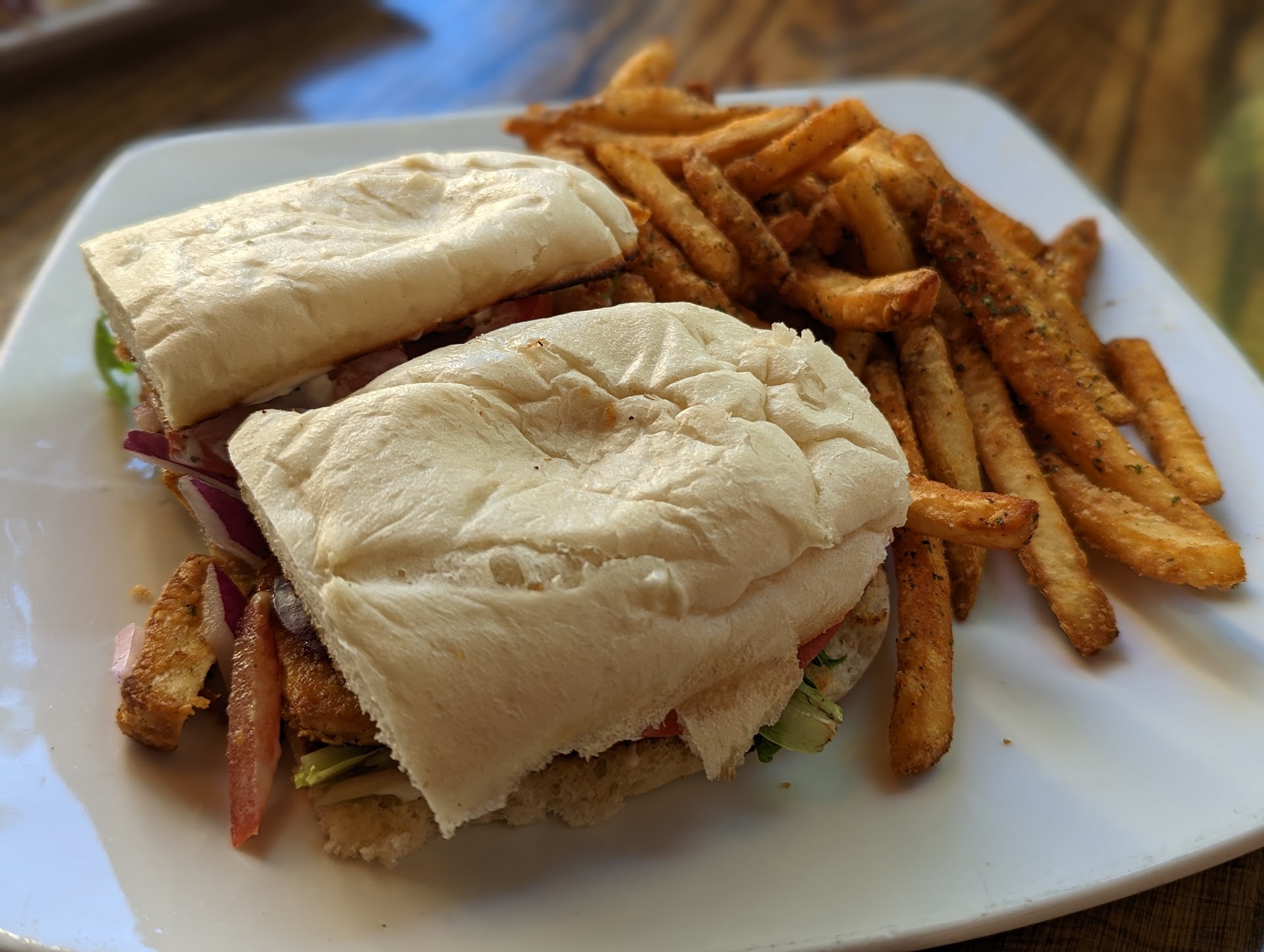 Read moreWe've been here many times now and I have some tips. If you want your appetizer to come out first make sure to order it and then go sit down. Then after 10 minutes go order the rest of your food. The cauliflower wings are hit or miss. Sometimes they are fantastic and sometimes they taste like deep fried gobs of salt. The blackened tofu sandwich with fries is a great meal. However, the sandwich is very messy and the plate it's served on is very small. I presume this is done because they want to appear as though they are giving you a "full plate of food" (and to skimp on fries). The psychology of this practice is undeniably useful but it is canceled out by the frustration one encounters when food falls onto the [dirty] table instead of an appropriately-sized plate. The soft baked pretzel is also a good choice when it comes to appetizers, however, be prepared for it to come out of the kitchen without being cut into small bite-sized pieces. At that point you are left watching everyone at the table rip apart a large pretzel with their dirty fingers. The bar is often overcrowded and with no designated place to order drinks, it can take a long time to be served or even noticed. Would I go back? No, I've given this place too many chances and it's just too inconsistent and disappointing. There's nothing like spending $60 on dinner and going home...