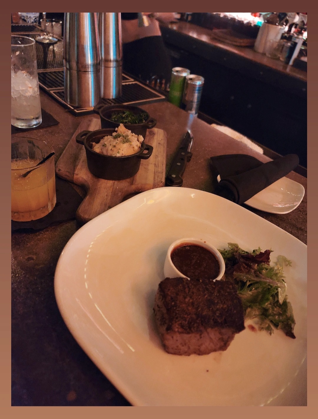 Read moreI made 630pm reservations for my friends birthday dinner on a Wednesday evening. My friend arrived a few minutes early and was able to order a bottle of Prosecco for her celebratory dinner with ease, the bar was not crowded at all. We surveyed the scene and there was an open table in the front room right by the windows with a view of the outdoor seating and city street. We both liked the upbeat atmosphere of the bar area over the more intimate ambiance of the dining room. Do get at least a glimpse of the plant wall though if you are not eating in the dining room, unfortunately I was not able to take a picture as a large table was dining there. The hostess very pleasantly checked with wait staff and was able to accommodate our request to seat at the adorable table by front window. She placed our bottle on the table and promptly were served waters and complimentary pickles. I have not seen that before interesting, I am not a pickle connoisseur but apparently there are two varieties and one on the more zesty side. We ordered Crab Rangoons which were half priced as part of the 5pm-7pm happy hour special. They were tasty! We shared a wedge salad as well, you can never go wrong with the wedge, yum! I had the Linguine Catalan that was packed with fresh clams, shrimp, Chorizo in a white wine garlic butter sauce. This dish definitely packs a spicy kick which I love. It did not keep well as leftovers so maybe lay off the appetizers or share dishes. My friend had the short rib Ravioli in a Bordelaise sauce and served with Wild Mushrooms. She enjoyed her entree as well. We would normally skip dessert but not for a Birthday dinner. My friend chose the Brownie Sundae that was served with the sparkler. Service was prompt and friendly, we will definitely be back to try other dishes. Happy hour would be a great time to go for an inexpensive treat. I almost forgot I was pleasantly surprised when I opened the check at how reasonable the prices were for all this food! It was quite a bit less than what I expected for a trendy...