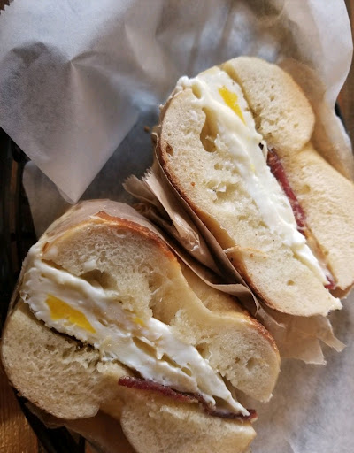 The Bad- The bagels were mediocre, at best. We had plain onion bagels that we toasted at home and ate with cream cheese, and I had a bagel sandwich with egg, cheese, and bacon. There was nothing special about the bagels, and in fact, they were not nearly as good as Bruegger's and Price Chopper. It's not saying much for a bagel specific restaurant when a chain grocery store puts out a better product. They only have American cheese, which of course, is not even really cheese. It detracted from the quality of the sandwich significantly because it's such a cheap addition. The addition of cheddar or swiss or SOMETHING other than the no option option of American slices would at least elevate the sandwich to slightly above mediocre. The bacon was rather crisp and kept crumbling and falling off the sandwich. Not a huge deal, but it should've been taken off the flat top about a minute before it was so that it could hold its' shape and not crumble all over the place.